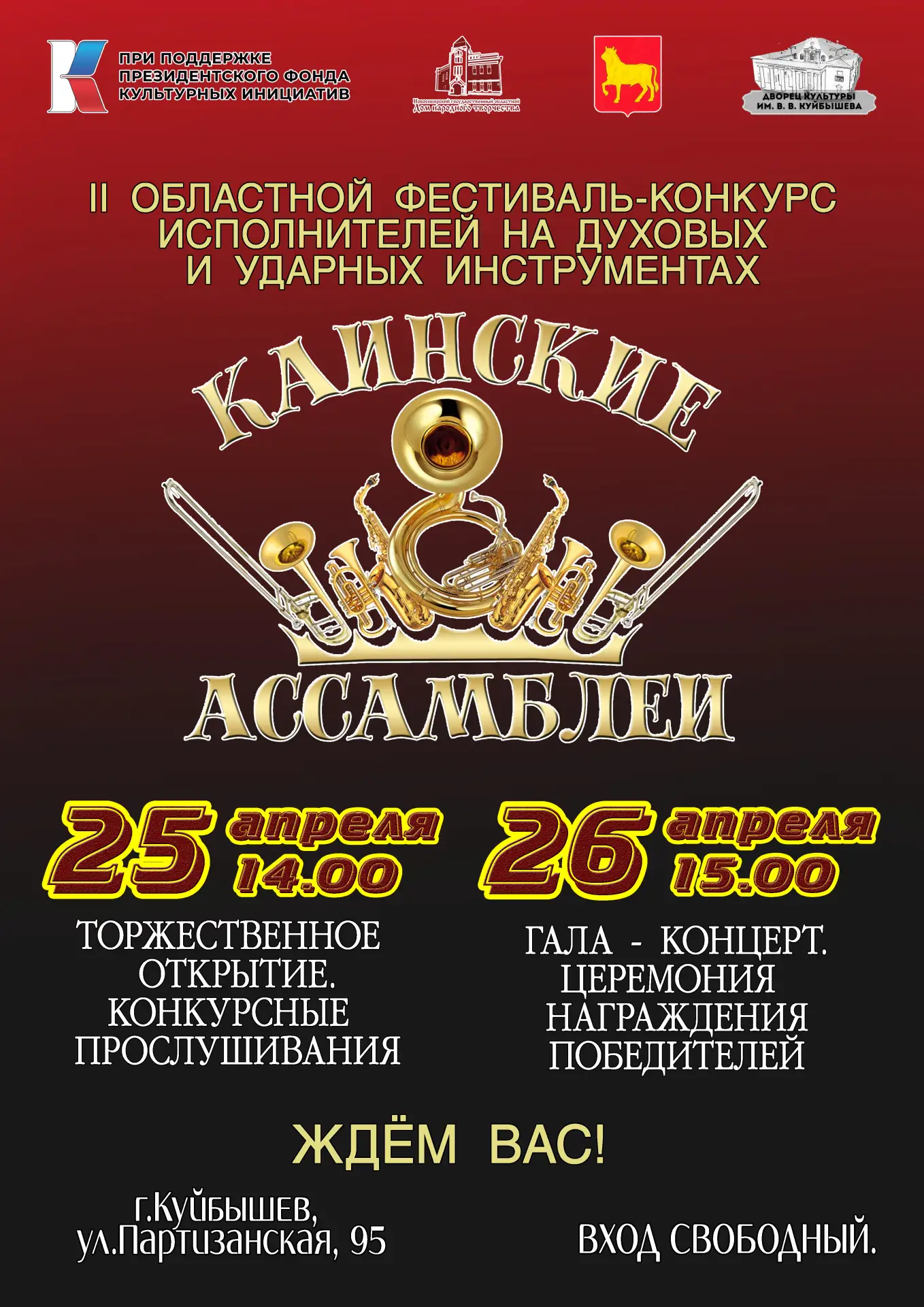Приглашаем принять участие во II областном фестивале-конкурса исполнителей на духовых и ударных инструментах «Каинские ассамблеи»