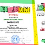 Дипломантом I степени в номинации «Читаем сказки» — Бобрик Лев (театр чтеца «Калейдоскоп слов», руководитель Ю.В. Непомнящих), была исполнена сказка Г.Х. Андерсена «Дворовый петух и флюгерный»;