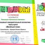 Дипломантом II степени в номинации «Кукольный спектакль» — Образцовый самодеятельный коллектив театр кукол «Весёлый гном», (руководитель Е.Ю. Шушарин), поставлен спектакль «Лисенок-плут» по В. Павловскиса.