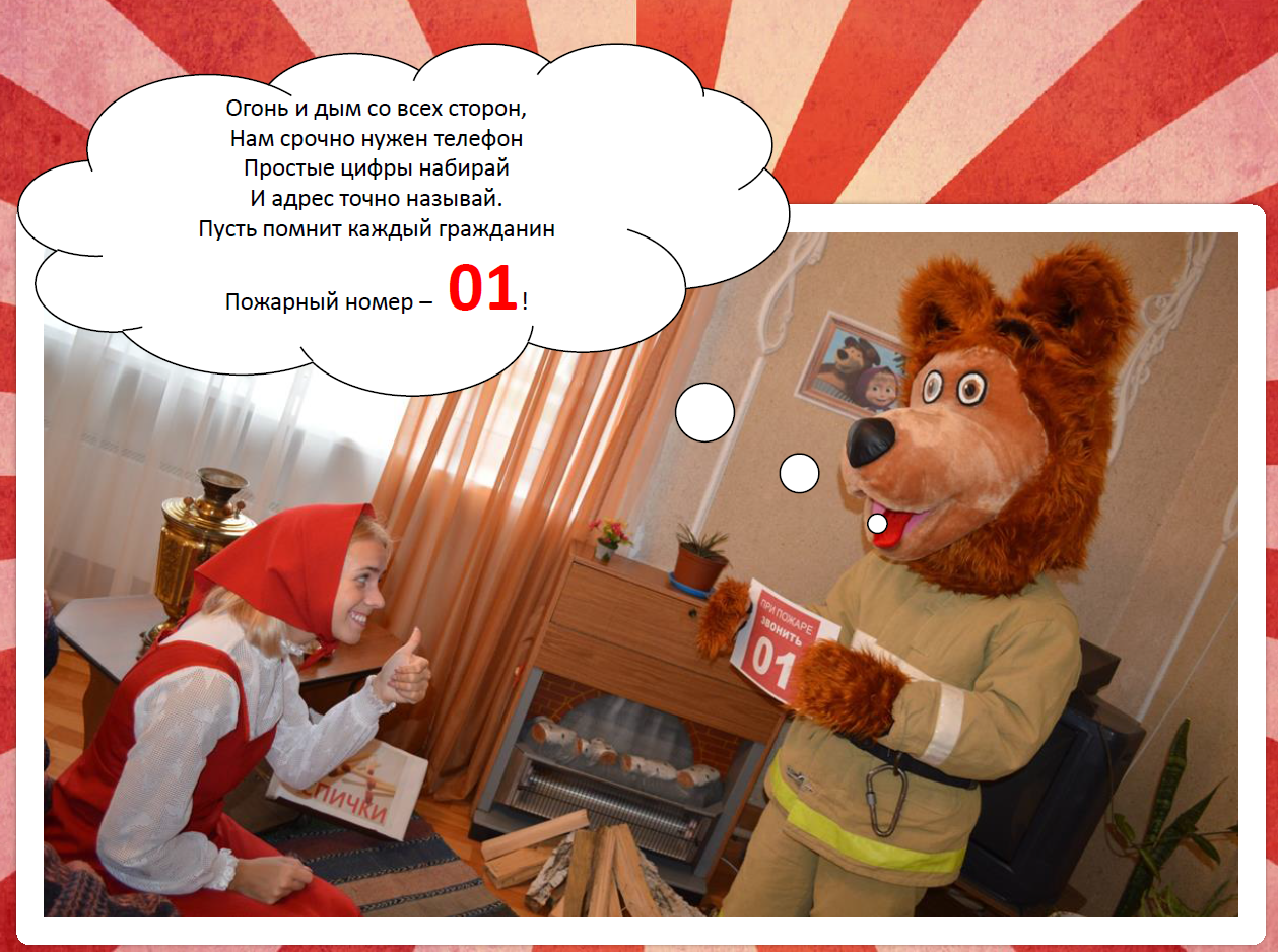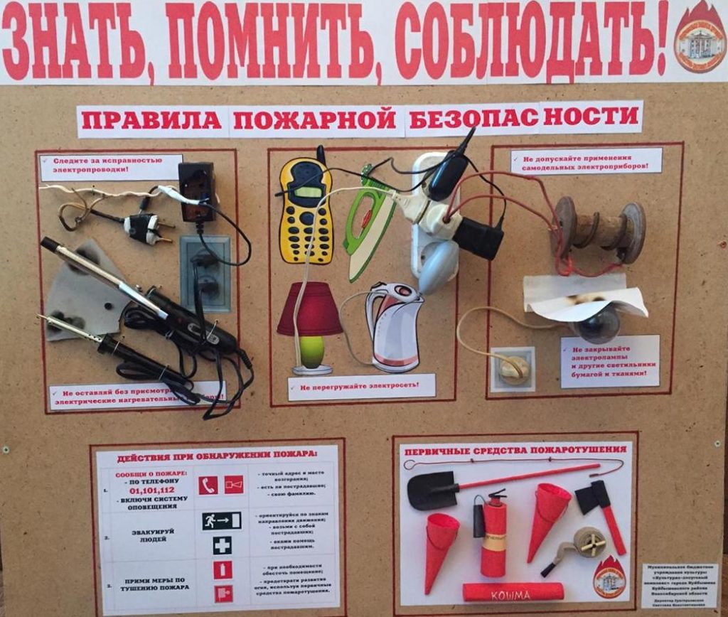 Команда «Культурно-досугового комплекса» творчески подошла к оформлению работ, стенд «Знать. Помнить. Соблюдать» был создан не в привычном текстовом варианте, а наглядно и объёмно, с использованием электроприборов, показали, как нельзя делать, чтобы не случилась беда и не возник пожар. Презентация с любимыми сказочными героями Машей и медведем в стиле комиксов, обязательно оставить след в памяти детей и при возникновении пожароопасной ситуации, ребята будут действовать правильно, и сами не создадут опасность.