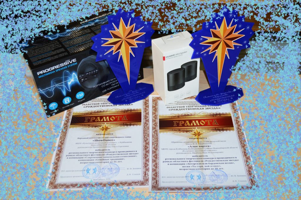 В 2020 году, в связи с непростыми обстоятельствами нашей жизни, финалом конкурса «Рождественская звезда» стал фильм с участием победителей и лауреатов конкурса, в том числе в гала-концерт фестиваля вошли и творческие коллективы МБУК «Культурно- досуговый комплекс» города Куйбышева. Победителем в номинации «Авторская или бардовская песня» с песней «Ты гори, мой огонек» стала образцовая студия авторской песни имени И.И. Щербининой «Алые паруса», руководитель И.В. Щербинин и в номинации «Современная танцевальная композиция» с хореографической постановкой «Семейные традиции» победителем стал народный коллектив студия современного танца «SHOWDANCE», балетмейстер О.С. Крашенинникова. Поздравляем творческие коллективы с победой и желаем новых свершений и удач!