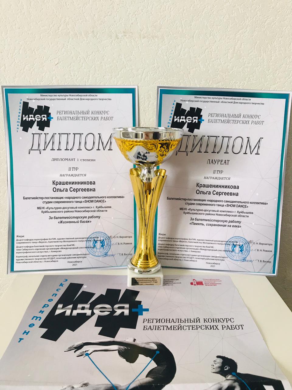 От МБУК «КДК» города Куйбышева балетмейстерские постановки на конкурс заявила Ольга Сергеевна Крашенинникова, балетмейстер народного коллектива студии современного танца «SHOWDANCE». По итогам конкурсных просмотров балетмейстерская работа «Память, сохраненная на века» в исполнении Валерии Чикановой стала Лауреатом конкурса, а постановка «Жизненный багаж» в исполнении Виктории Шариковой удостоена награды Дипломант I степени.