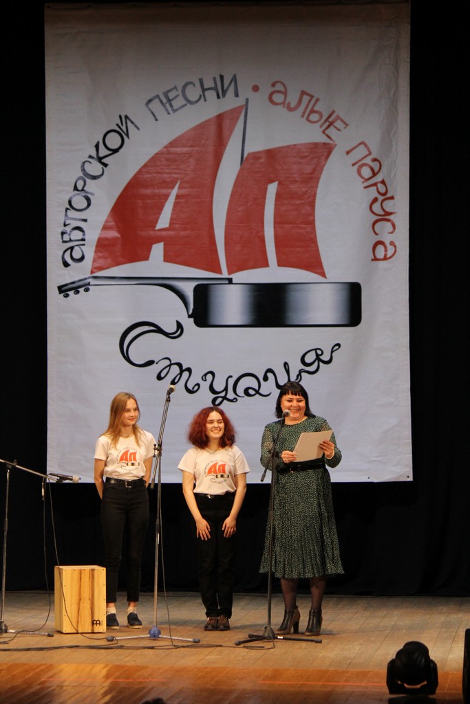Выпускникам САП им. И.И. Щербининой «Алые паруса» были вручены благодарственные письма «за личные достижения, преданность жанру авторской песни, высокий уровень исполнительского мастерства».