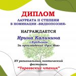 Лауреат 2 степени — Ирина Калинина (номинация «Видеопоэзия», произведение «Русь Моя»;
