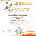 Лауреат II степени — автор и исполнитель Игошина Ольга Матвеевна за видео стихи «Как мир, стара любовь».