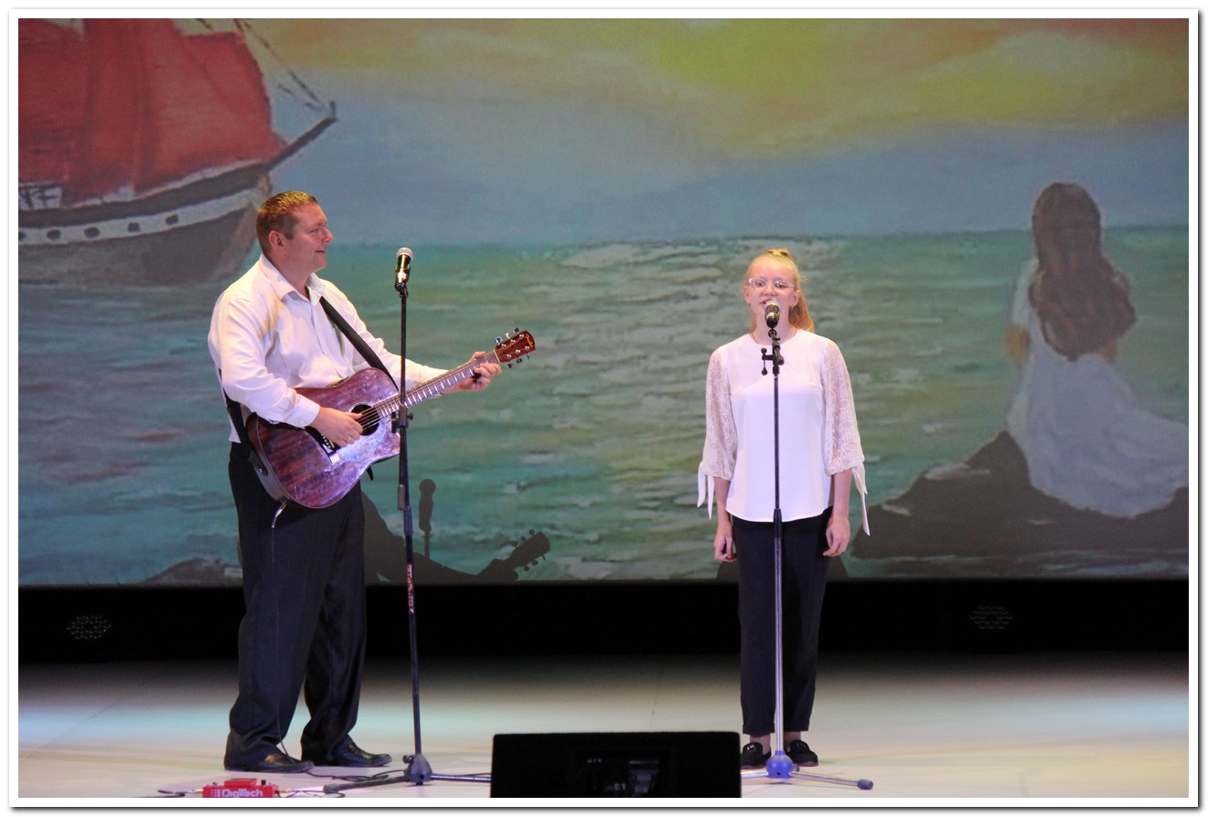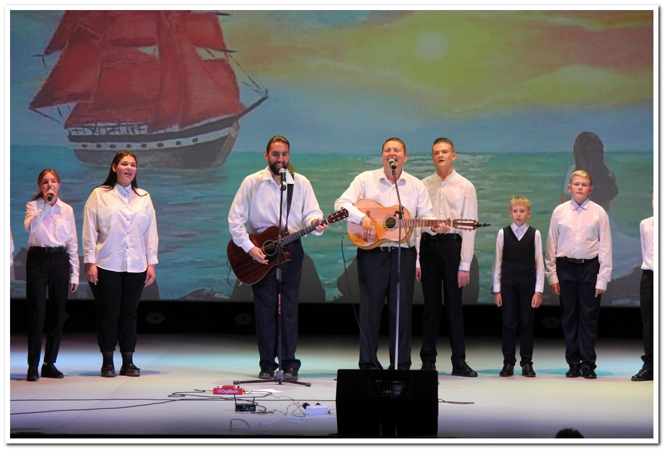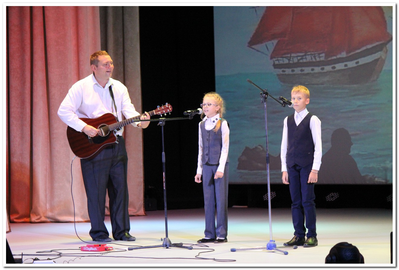 «Здравствуй, Осень! А Лето, прощай!»- под таким названием состоялся очередной концерт образцового коллектива студии авторской песни им.И.И. Щербининой «Алые паруса» под руководством Ивана и Михаила Щербининых. Эта первая осенняя встреча была на столько теплой, что всем присутствующим просто не хотелось расходиться. На протяжении двух часов длился концерт авторской песни, открыли мероприятие сами руководители братья Иван и Михаил Щербинины, исполнившие так полюбившиеся уже каинским слушателям песни легендарной группы «ДДТ» и его лидера Юрия Шевчука, а также образцы отечественной бардовской песни, сменили педагогов их юные воспитанники, они с таким трепетом делились своим ранним творчеством, что все прошло на одном дыхании. Концерт понравился на столько, что внимательная публика рукоплескала и просила коллектив студии петь еще. Встреча с авторской песней была не спонтанной, а посвященной 10- летию работы студии «Алые паруса» на куйбышевской земле и 5- летию со дня присвоения почетного звания «образцовый самодеятельный коллектив». В начале праздничного концерта коллектив «Алые паруса» поздравила директор Муниципального бюджетного учреждения культуры «Культурно- досуговый комплекс» Светлана Константиновна Григорьевская. Светлана Константиновна благодарила Ивана и Михаила за то, что они продолжают дело мамы Ирины Ивановны Щербининой и вручила настоящим руководителям студии благодарности МБУК «КДК» и Почетную грамоту главы города Куйбышева «за многолетний труд по развитию детско-юношеского и молодежного творчества в жанре бардовской песни и в связи с 10-летием со дня образования Образцового коллектива студии авторской песни им. И.И. Щербининой «Алые паруса» (руководитель И.В. Щербинин, аккомпаниатор М.В. Щербинин) на территории города Куйбышева».