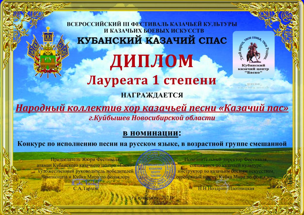 Поздравляем хор казачьей песни «Казачий пас» с достойной наградой и желаем дальнейших творческих успехов!