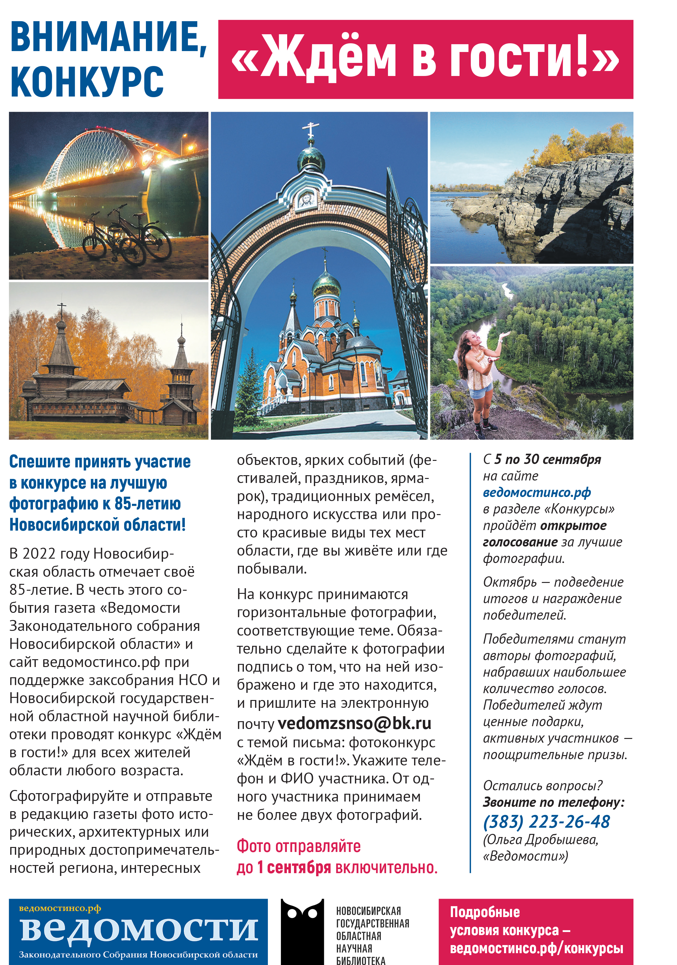 ведомостинсо.рф при поддержке заксобрания НСО и Новосибирской государственной областной научной библиотеки проводят конкурс «Ждём в гости!» для всех жителей области любого возраста.