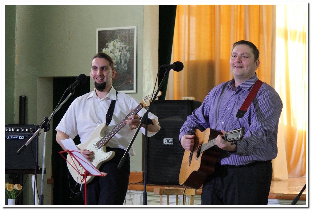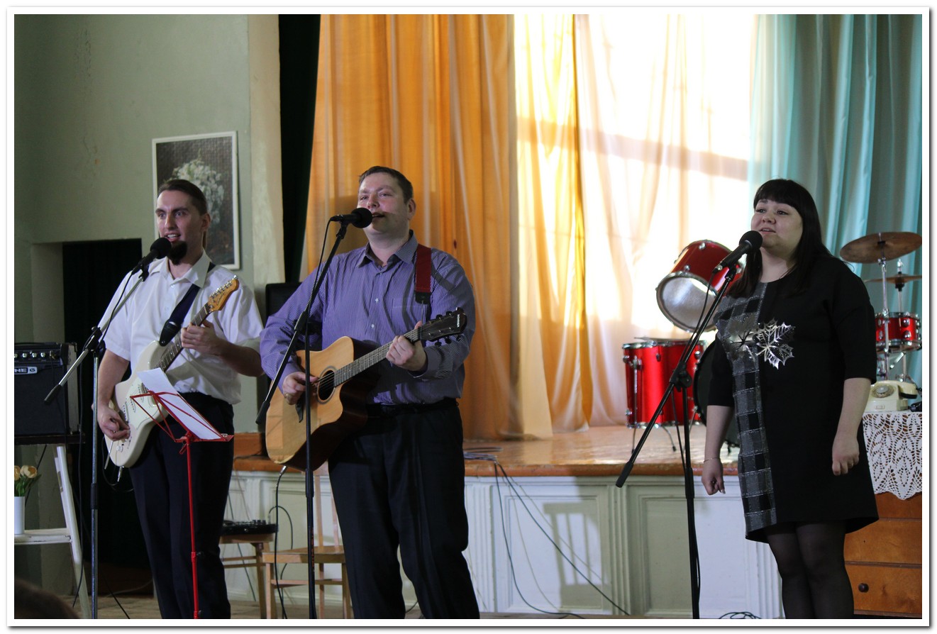 В программе принял участие и ансамбль «Живые струны» (рук. М.В.Щербинин). В исполнение участников коллектива прозвучали песни «Ходят кони по ладони» и «Мы желаем счастья вам», которую подхватили и подпевали все зрители в зале.