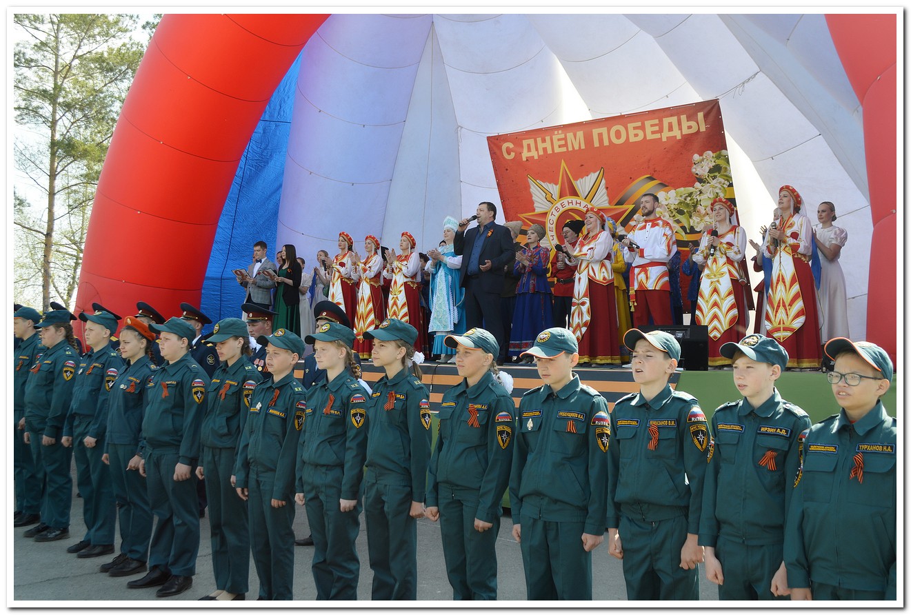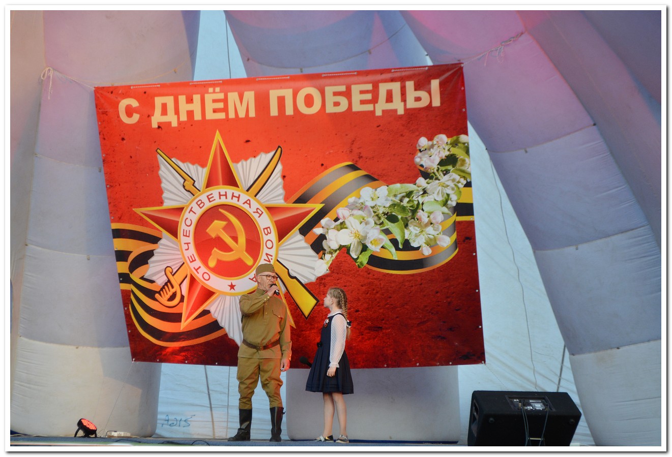 В Сквере «Городской сад» в этот день состоялась концертная программа «Парад поколений» с участием ветеранов и творческих коллективов города. Звучали военные и народные песни, стихи о войне. В концерте приняли участие: вокальная группа «Россияночка» (руководитель М. Беляева, аккомпаниатор А. Гаврилов), солисты студии эстрадного вокала «Soul music» (руководитель Е. Ковальчук), участники театра чтеца «Калейдоскоп слов» (руководитель Ю. Непомнящих), студия авторской песни имени И. Щербининой «Алые паруса» (руководители Иван и Михаил Щербинины). В течение дня работала фотовыставка «Мы памятью живы», прошла акция «Солдатская каша» и состоялся мастер-класс И.А. Калининой «Голубь мира». Дети охотно участвовали в изготовлении поделки в технике оригами. Каждый участник остался доволен своей работай, которую в память об этом праздничном дне забрал с собой.