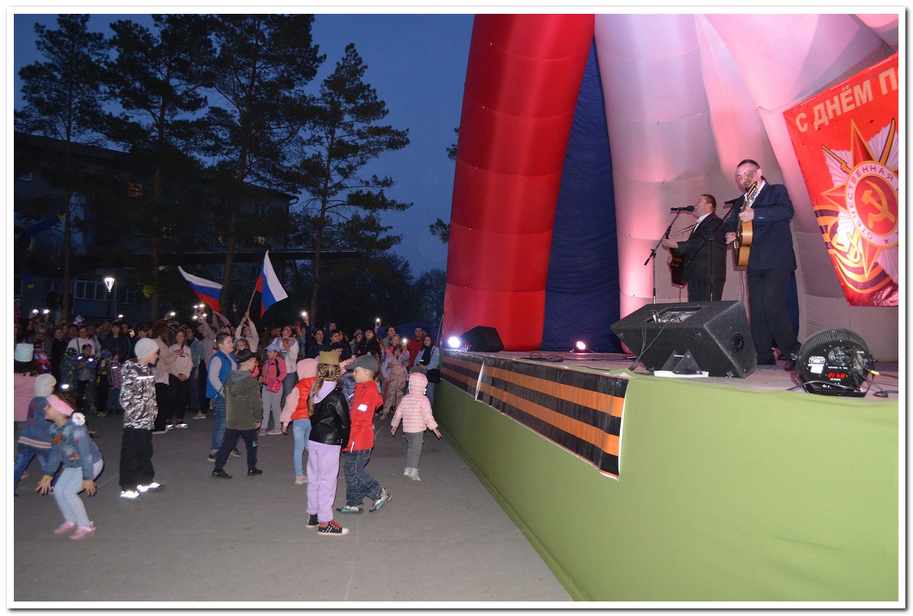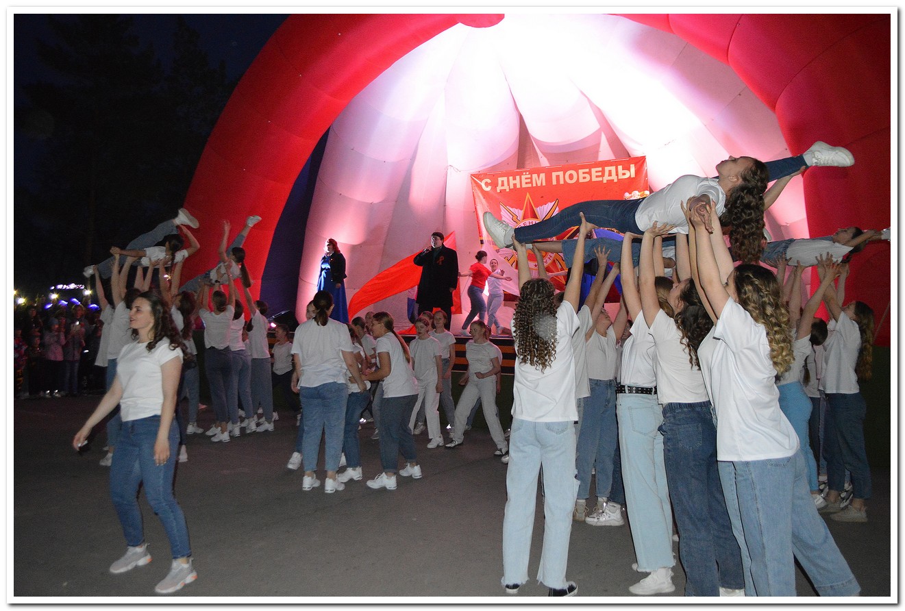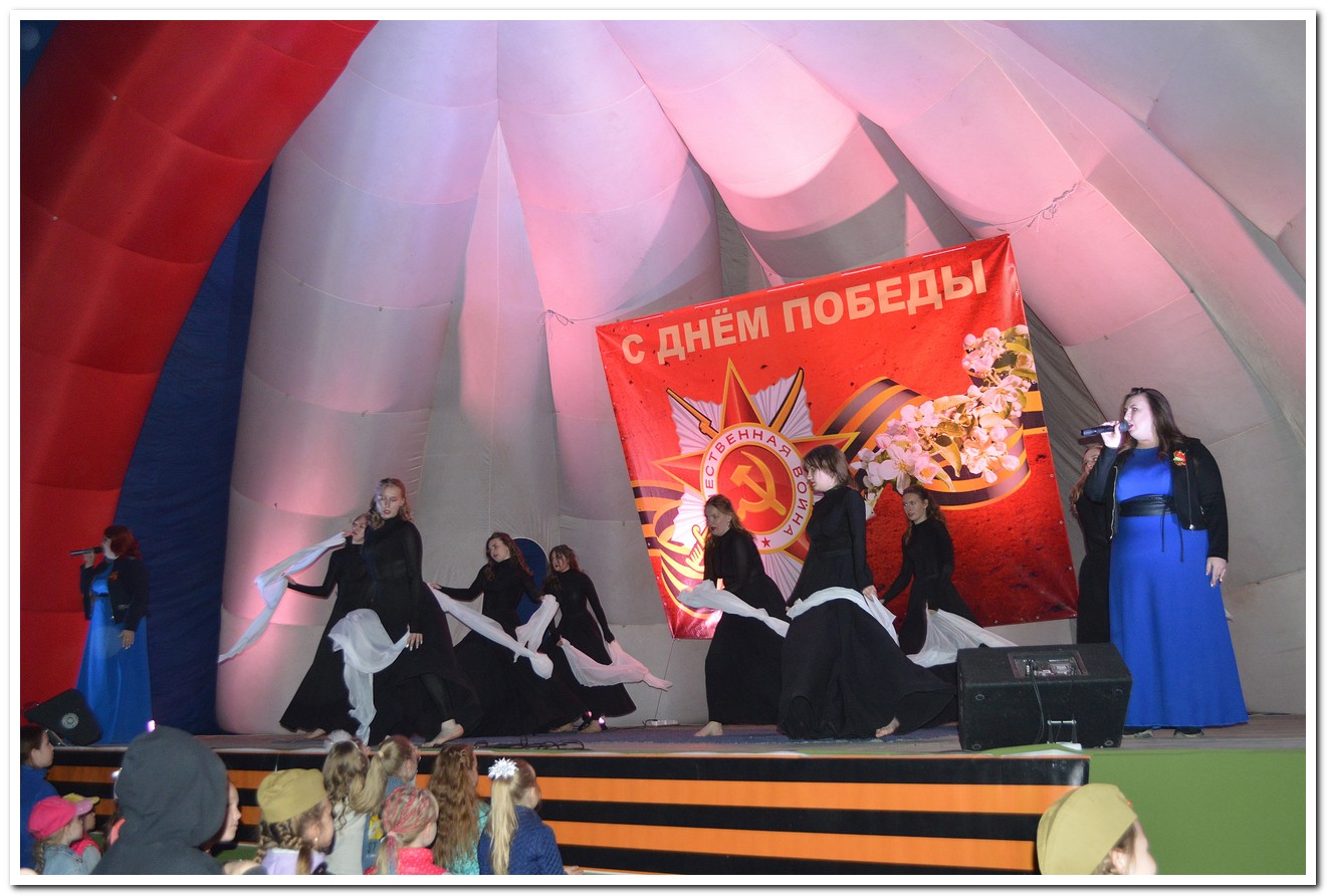 Вечером состоялся двухчасовой тематический праздничный концерт, артисты города Куйбышева рассказывали жителям города о воле советского народа к Победе, о подвиге наших дедов и отцов, иллюстрируя все это в песнях, стихах и танцевальных номерах. Мы, нынешнее поколение России, гордимся нашими предками и высоко чтим память героев Великой Отечественной войны, низко кланяемся их подвигу и верим, что наш народ в любое сложное для страны время готов встать на защиту Родины.