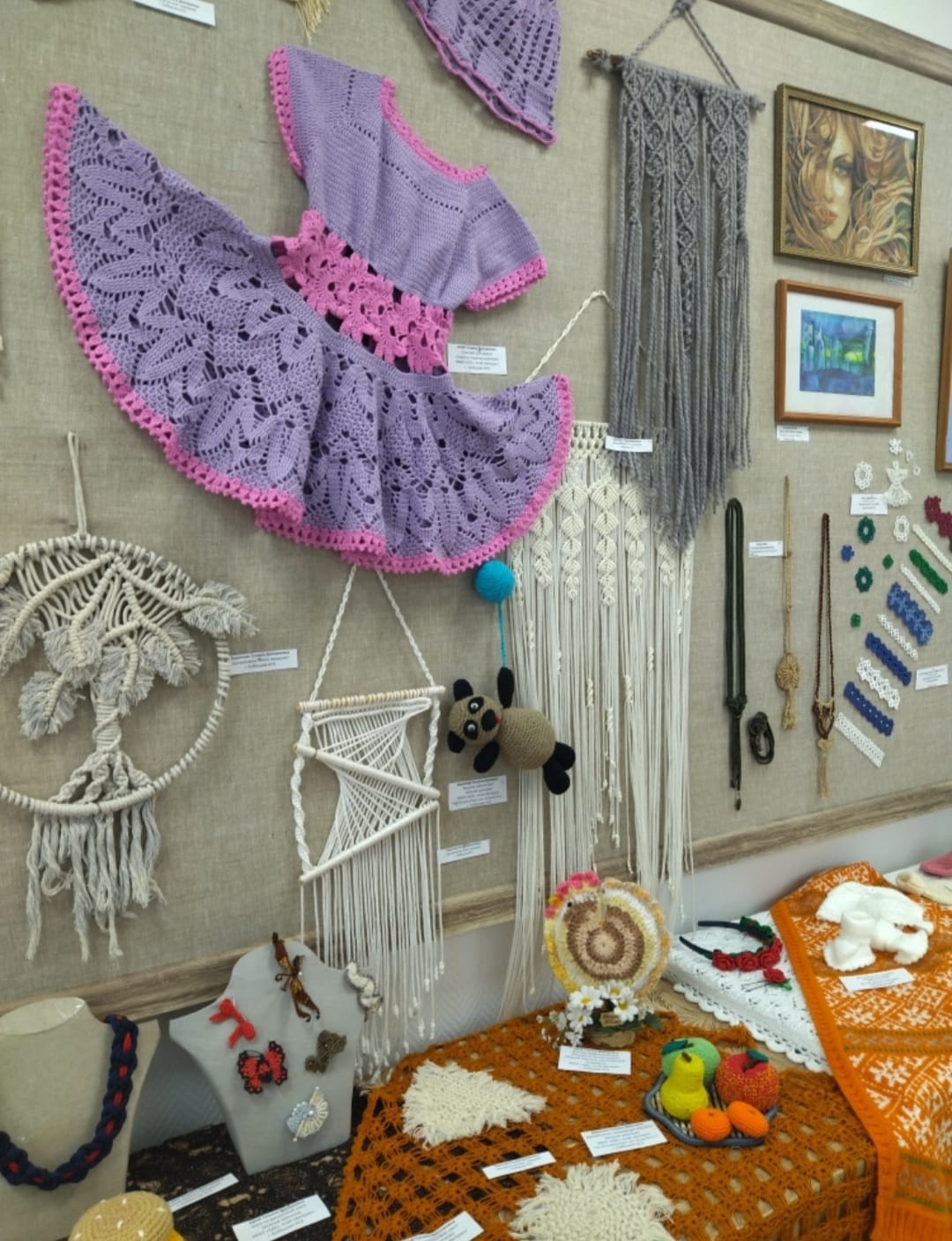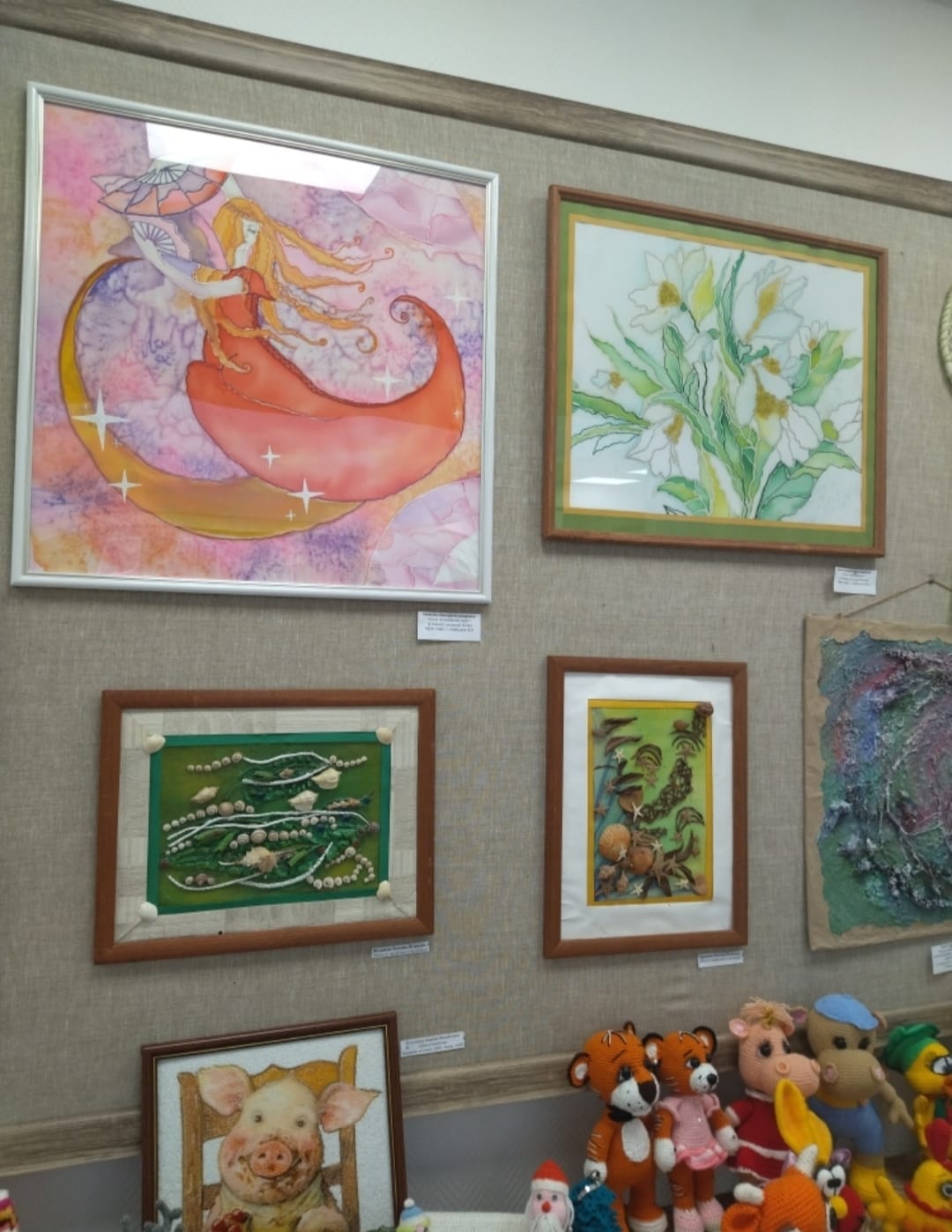 Работы удивляют и восхищают. Мастера и мастерицы использовали самые разные техники и направления декоративно-прикладного искусства: аппликацию из бумаги и природного материала, резьбу по дереву, вязание, валяние из войлока, вышивку крестом, роспись по ткани, плетение в технике «Макраме», изготовление кукол, лоскутное шитьё «Пэйчворг», лепку из полимерной глины.