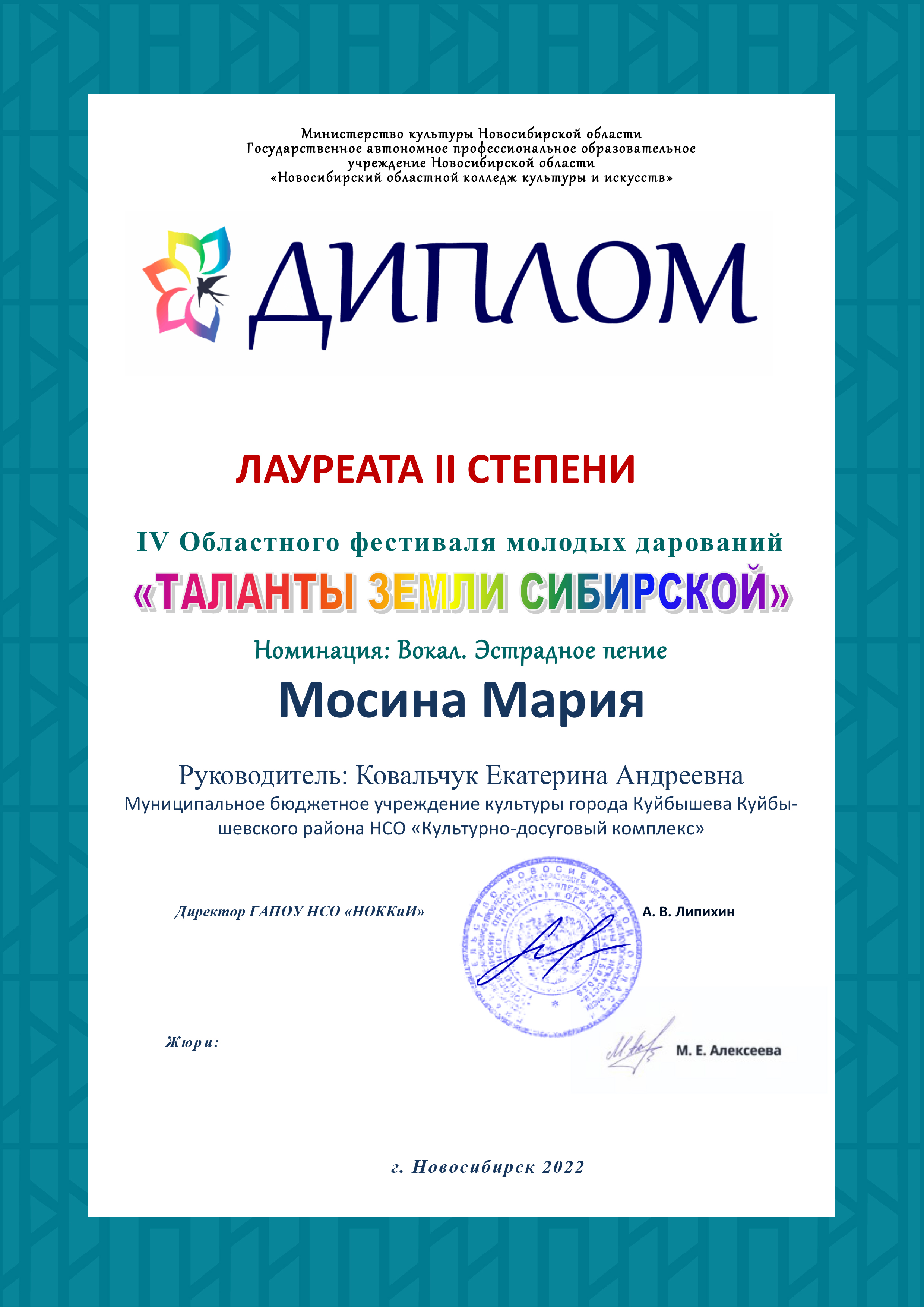 Подведены итоги IV Областного фестиваля молодых дарований «Таланты земли Сибирской». Учредителями и организаторами фестиваля являются Министерство культуры Новосибирской области и Новосибирский областной колледж культуры и искусства. Фестиваль направлен на выявление молодых дарований в сфере культуры и привлечение в дальнейшем к получению профессионального образования в организациях культуры и искусства Новосибирской области.