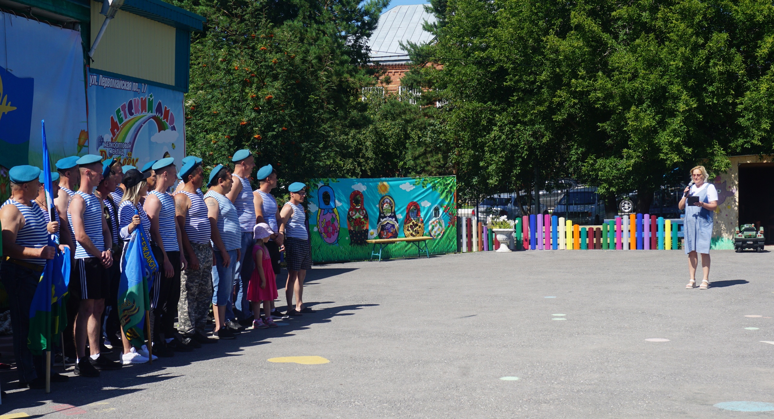 Праздник начался с торжественного шествия колонны со знаменами и флагами. «Десантное братство» поздравила заместитель начальника Отдела культуры, спорта и молодёжной политики администрации города Куйбышева Оксана Васильевна Караваева: «Во все времена служба в ВДВ была и остаётся образцом героизма, стойкости и беззаветной преданности Родине. В самых сложных условиях, при выполнении любых задач Вы не раз подтверждали своё право называться элитой российской армии. Желаю ветеранам и действующим военнослужащим ВДВ крепкого здоровья, счастья, семейного благополучия и мирного неба над головой!».