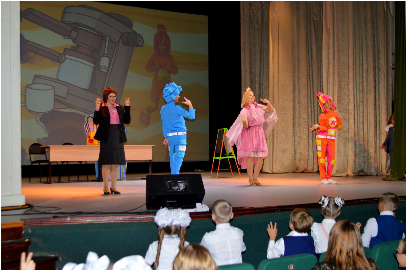 Первое сентября — всегда волнительный, эмоциональный день, как для первоклашек, так и для родителей. В этом году специалистами дворца культуры в большом зале было подготовлено театрализованное представление под названием «Фиксики идут в школу». Ребята играли в музыкальные игры, отгадывали загадки и приняли участие в зарядке.