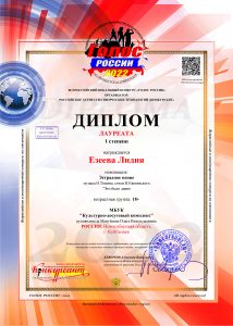 Солистка ансамбля Лидия Езеева с песней Н.Томина на стихи В.Кветинского «Это было давно» стала Лауреатом I степени.