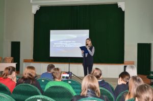 • Тематическая встреча с учащимися МБОУ СОШ №10 и студентами ФГОУ СПО Сельскохозяйственного техникума «Сегодня ты школьник (студент), а завтра избиратель!». На встрече присутствовала председатель совета депутатов города Куйбышева Куйбышевского района Новосибирской области, секретарь местного отделения партии «Единая Россия» Куйбышевского района Новосибирской области Елена Анатольевна Яблокова, которая рассказала ребятам как важно принимать участие в выборах, о важности каждого голоса и помогла разобраться в вопросах избирательного права.