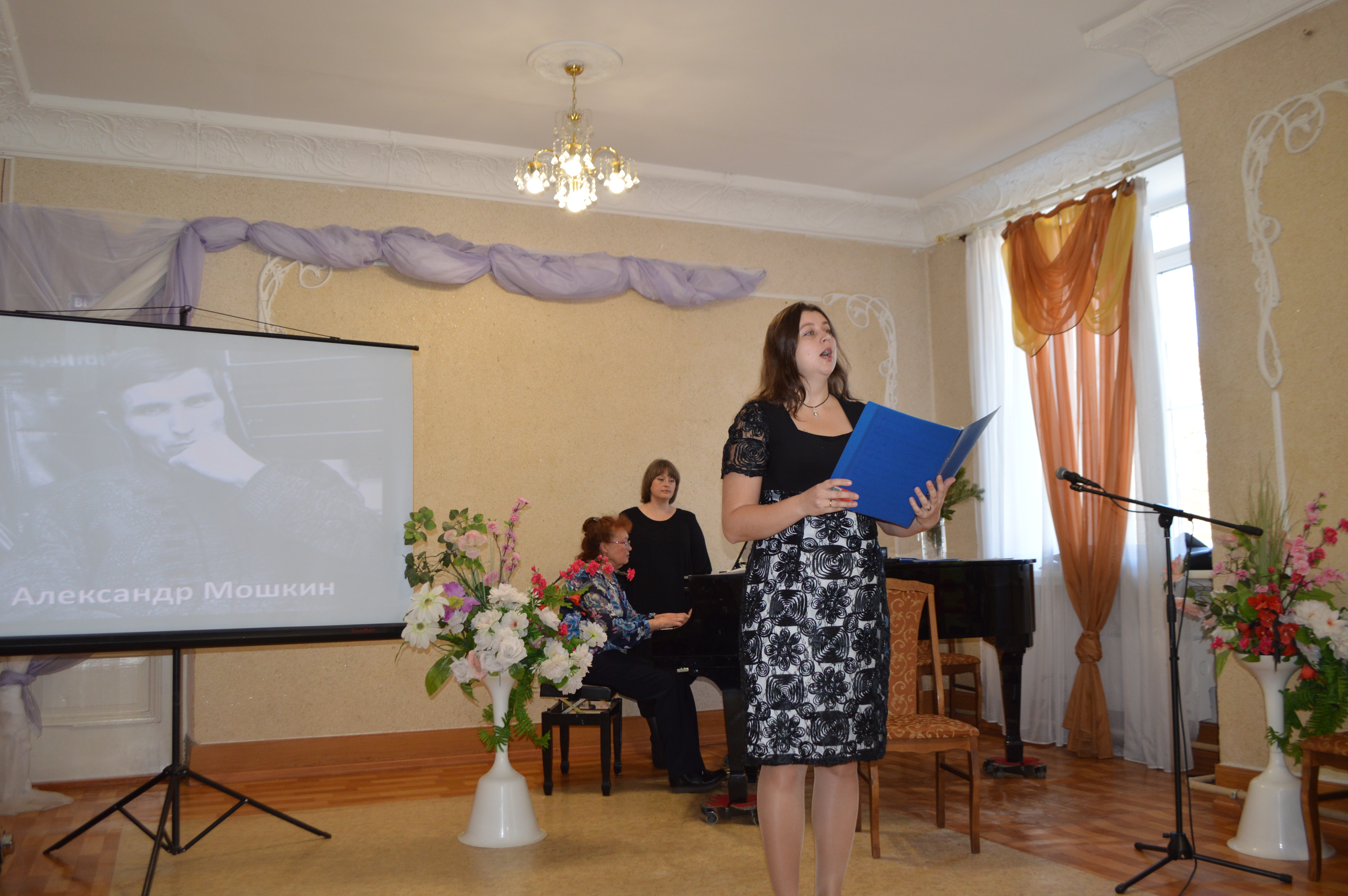 16 октября 2022 года в гостиной Дворца культуры состоялись традиционные Покровские встречи. Началась встреча с минуты памяти ушедших талантливых творческих людей, которые внесли неоценимый вклад в культуру нашего края – это поэты, композиторы, художники, прикладники, фотографы. Каждый из них неповторим. Особое внимание далее было уделено и посвящено памяти и творчеству Александра Дмитриевича Мошкина, уникального композитора, творческий диапазон которого настолько широк, что не укладывается в сознании, как можно обладать такими способностями… Александр Дмитриевич писал музыку к песням для детей и взрослых, балладам, спектаклям, писал музыкальные пьесы, инструментальную музыку для фортепиано, виолончели, оркестровую музыку! Его музыка красочно многогранна и необыкновенно высока по своему духовному содержанию.