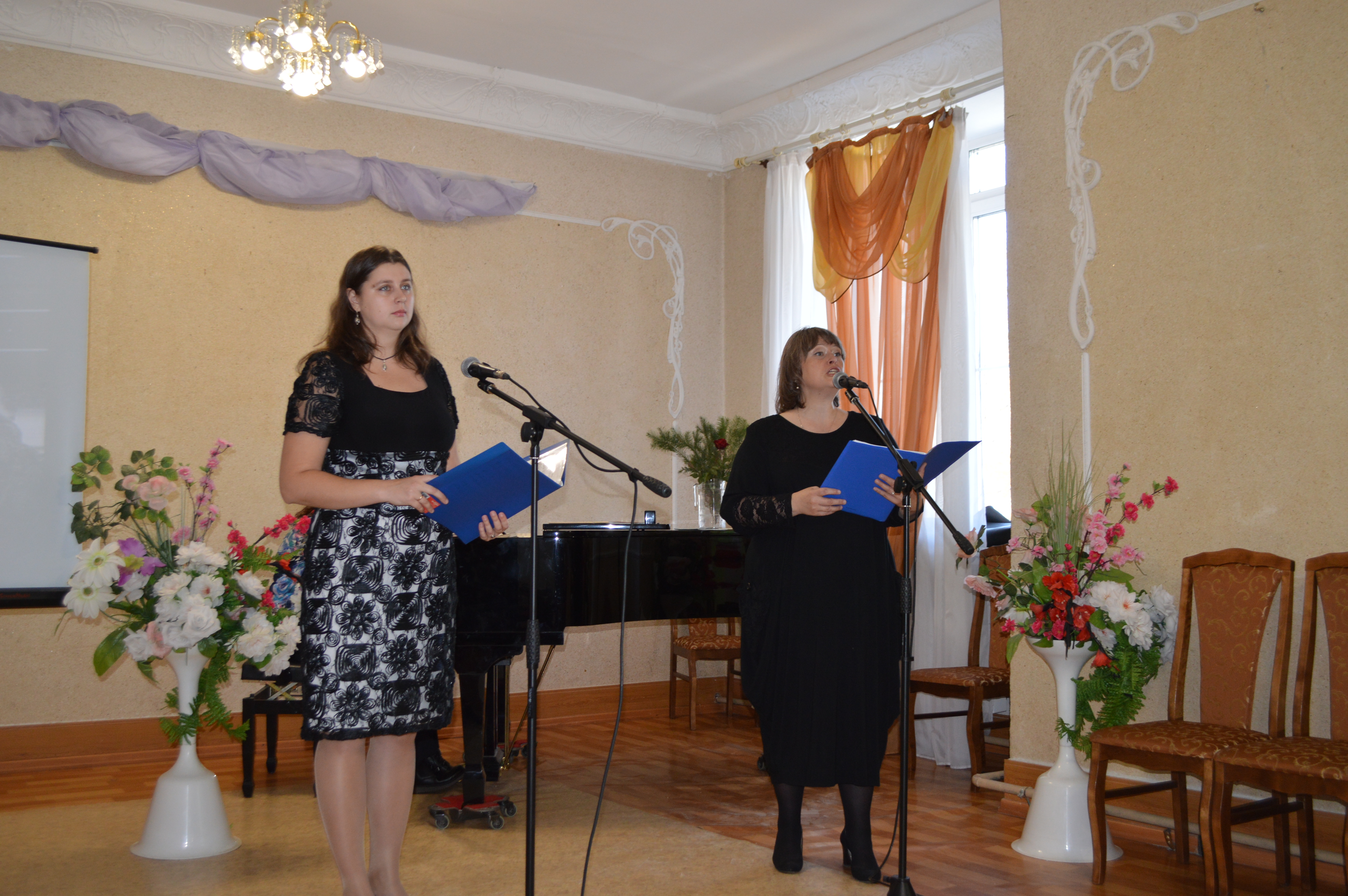 Под аккомпанемент на рояле Л.Н. Леденёвой дуэт Ольга Овчинникова и Мария Толчина исполнили шведскую «Северную балладу» 11-13 веков, песни из спектаклей на стихи Р.Бёрнса «В зелёном Эберфельди», «Мой край», на стихи Рубена Дарио «Не грусти», Мария Толчина спела песню «Утро» также на стихи Р.Бёрнса.