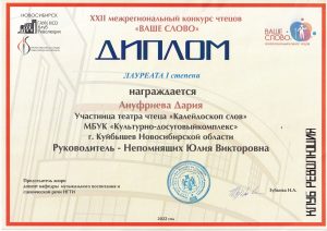 Итак, Дария Ануфриева стала Лауреатом I степени.