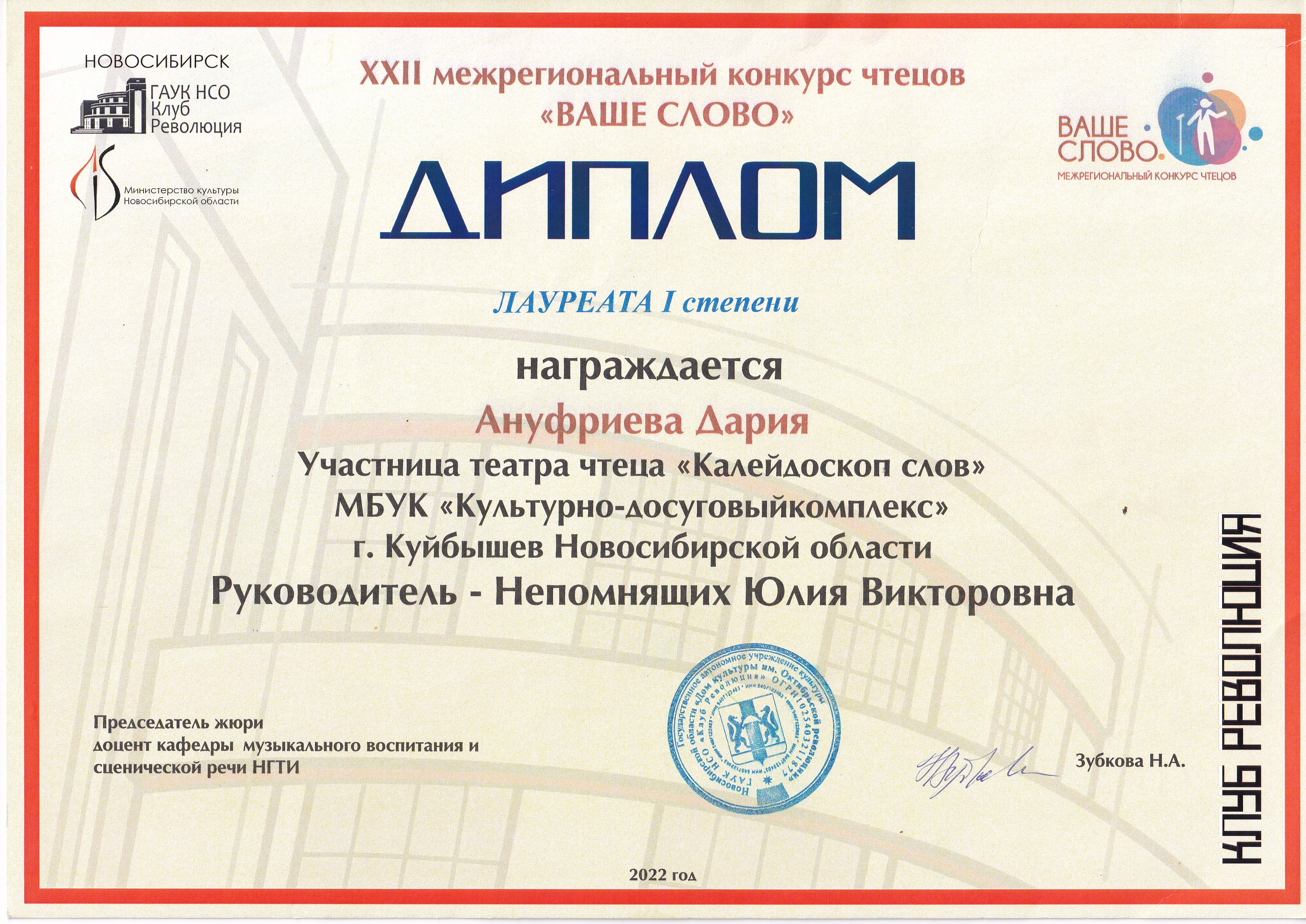 15 октября в городе Новосибирске в ДК Октябрьской революции состоялся XXII Межрегиональный конкурс чтецов «ВАШЕ СЛОВО!».