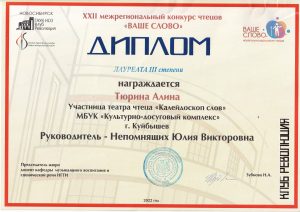 Алина Тюрина получила диплом Лауреата III степени.