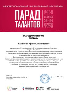 Участие во Всероссийском инклюзивном фестивале «Парад талантов»