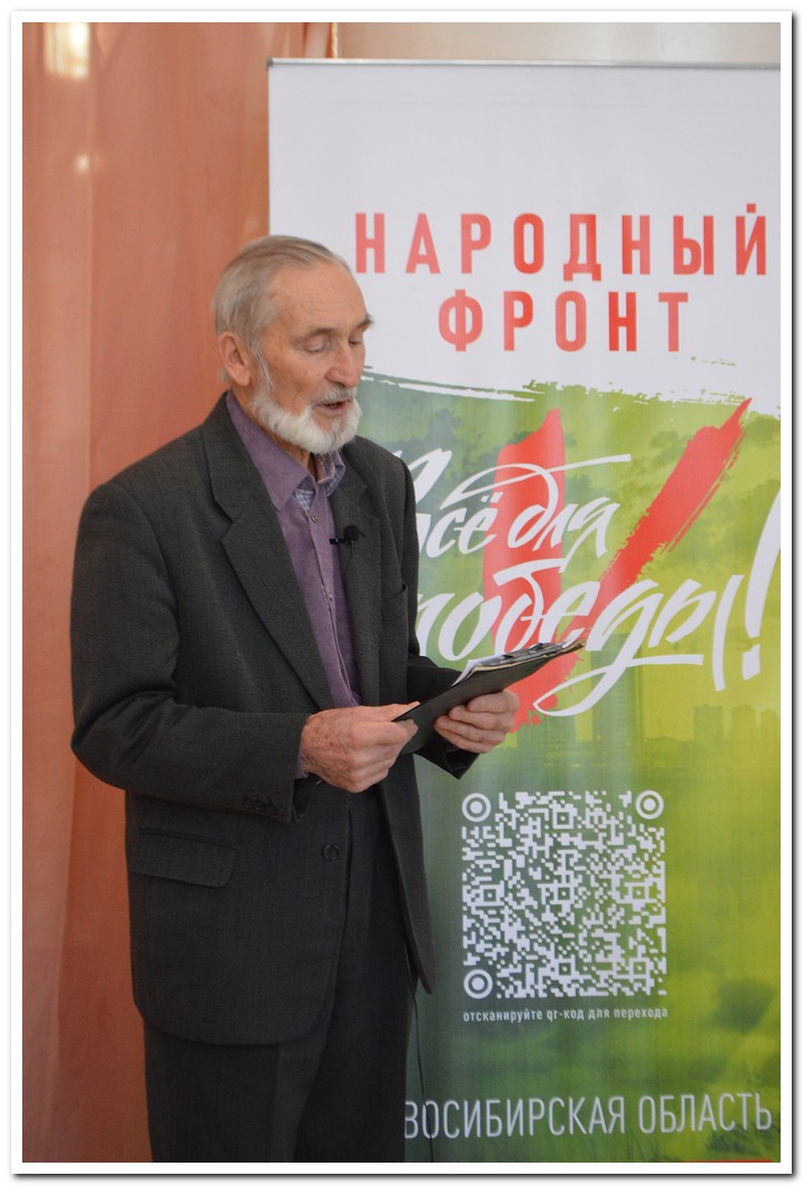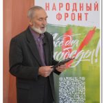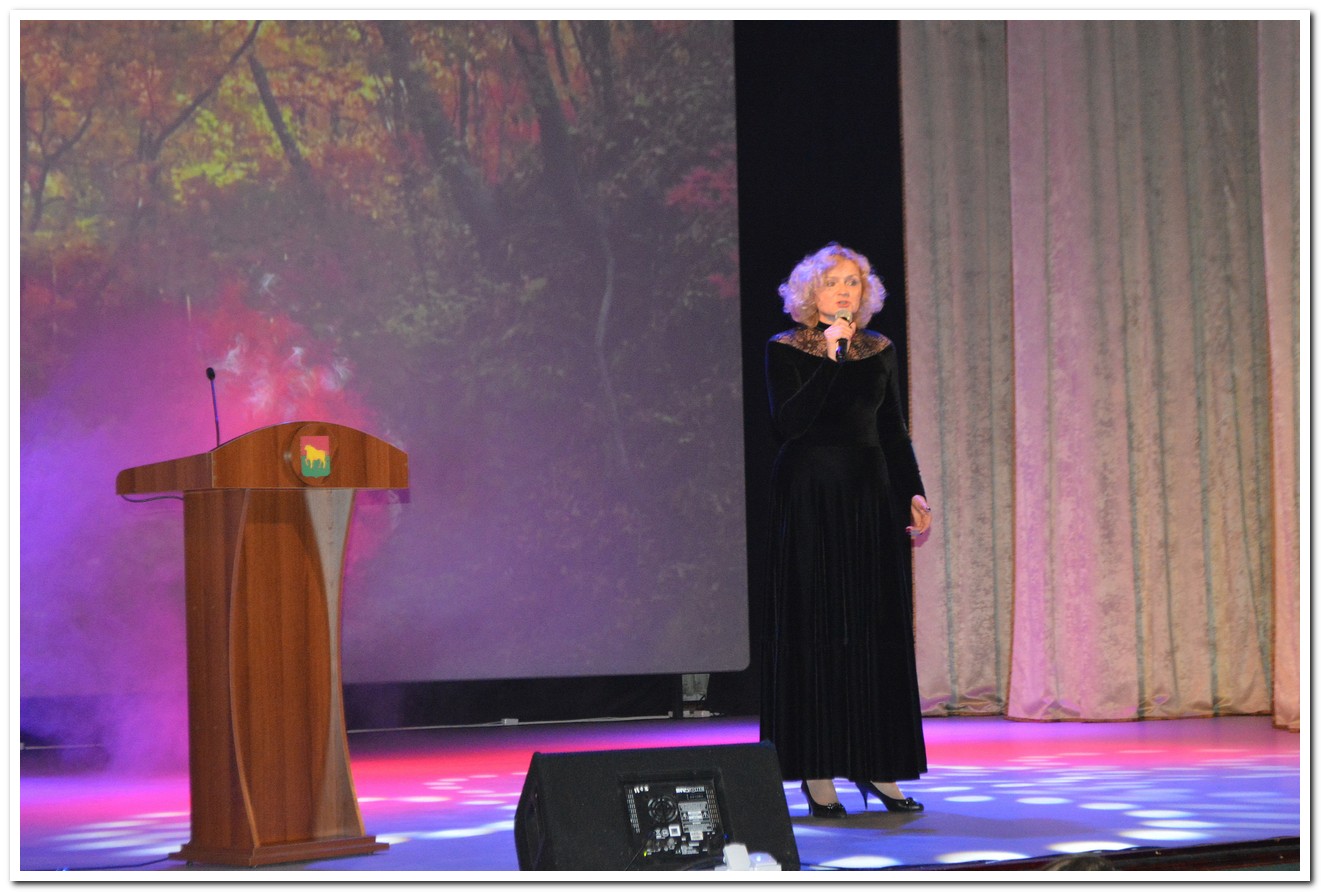 Елена Фельзина и Сергей Сотников во время проведения собрания исполнили номера патриотической направленности.