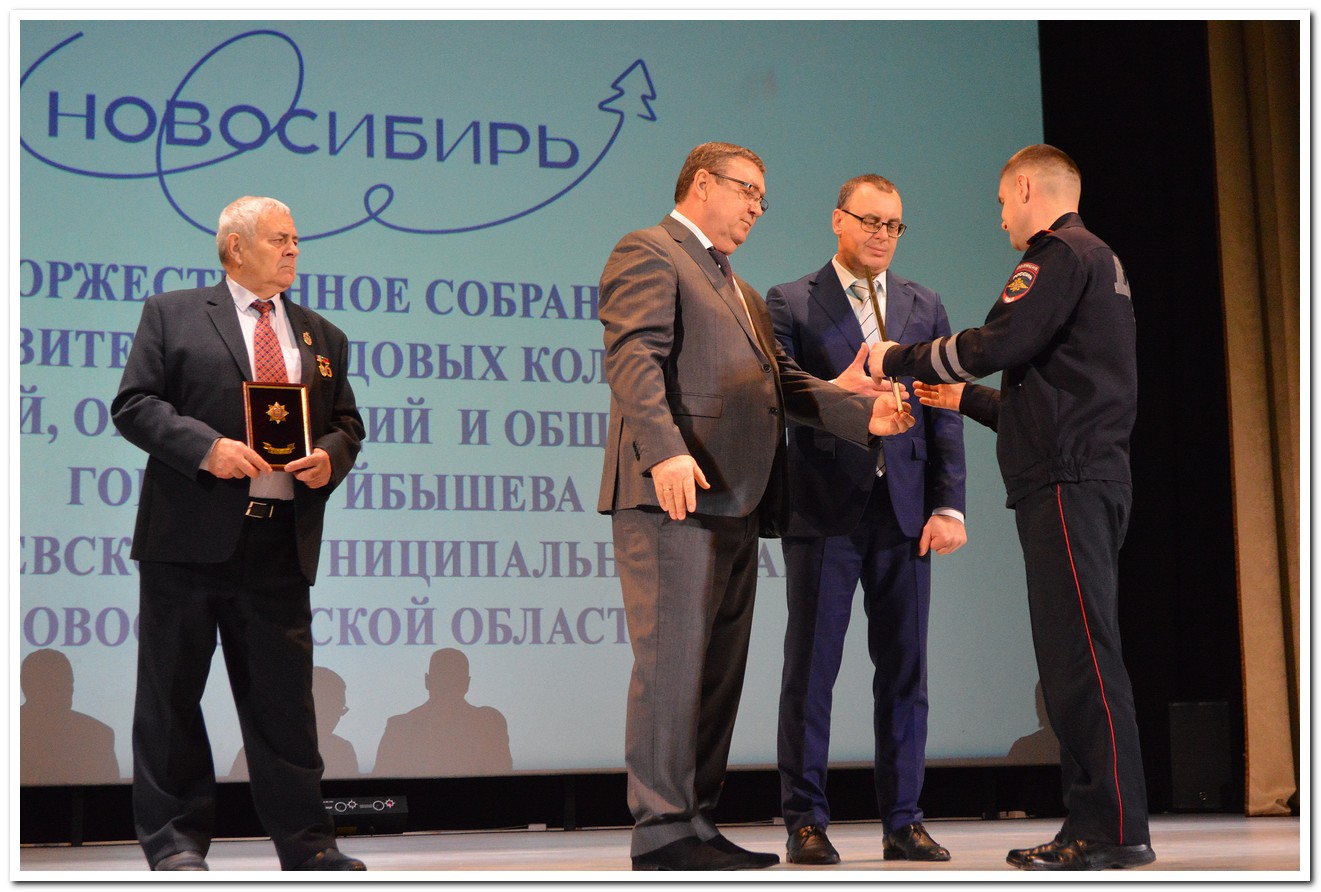 На собрании присутствовали почетные гости: Министр жилищно — коммунального хозяйства и энергетики Новосибирской области Д.Н. Архипов; помощник депутата Государственной Думы Российской Федерации О.И. Иванинского А.В. Кибальников; депутаты Совета депутатов города Куйбышева и Куйбышевского района, ветераны, Почетные граждане города Куйбышева и Куйбышевского района.