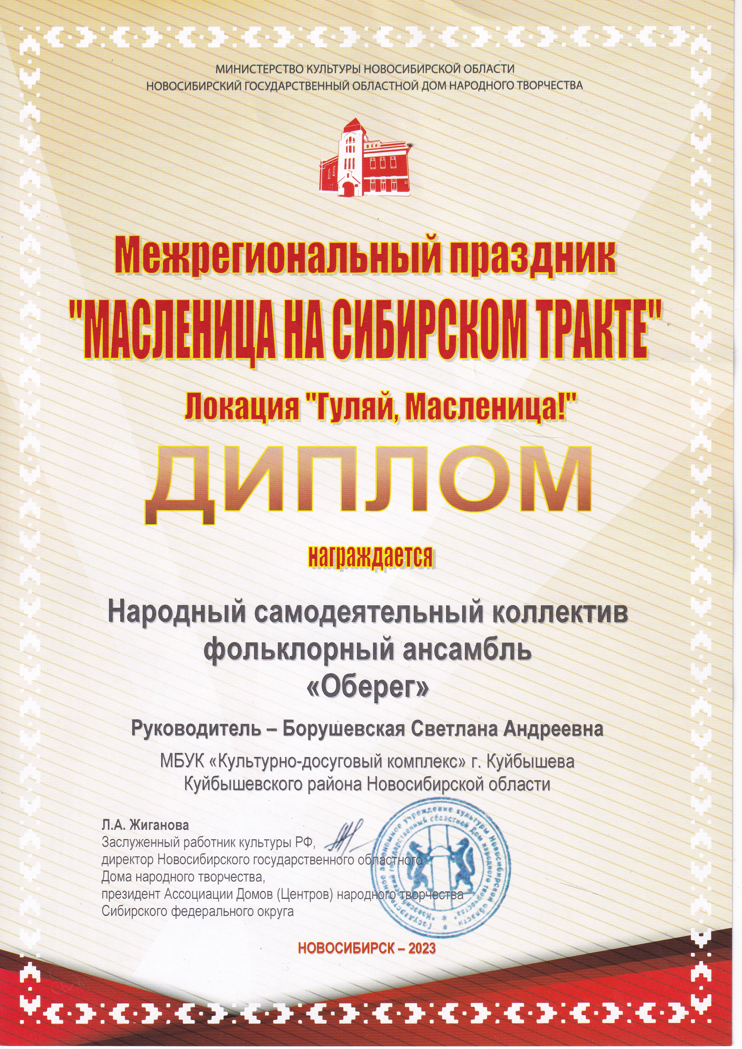 От МБУК «Культурно-досуговый комплекс» г. Куйбышева в празднике-фестивале выступили: солистка Дворца культуры, финалистка телевизионного шоу «Голос» Л.Я. Соловьёва и Народный самодеятельный коллектив фольклорный ансамбль «Оберег», руководитель Борушевская С.А., их творчество по достоинству оценили зрители и организаторы мероприятия.