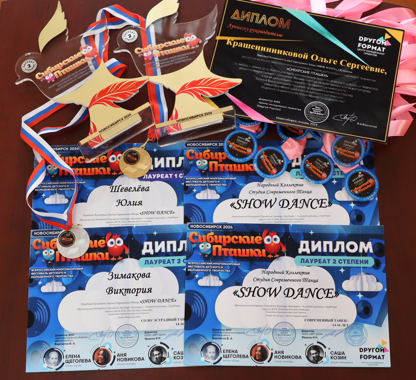 За участие во Всероссийском многожанровом фестивале детского и молодежного творчества «Сибирские пташки», за любовь к своему делу, блестящие идеи, нескончаемую энергию, за вклад в культуру и творческое развитие подрастающего поколения Ольга Сергеевна награждена дипломом «Лучшего руководителя».