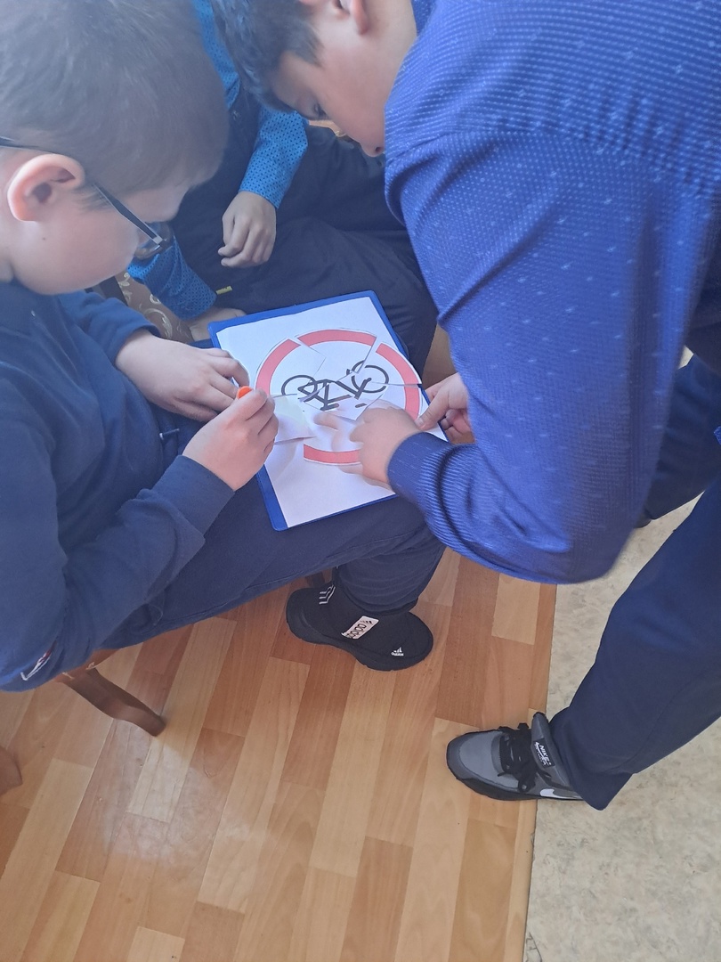 Ребята разделились на две команды, выбрали капитанов. Конкурсы были разнообразные и интересные. Дети отгадывали загадки, вспоминали дорожные знаки и транспорт; очень понравился конкурс «Собери знак» — на время из пазлов нужно было воспроизвести знаки дорожного движения. На протяжении всего мероприятия ребята очень активно отвечали на вопросы и выполняли задания, получили дополнительные знания о правилах и знаках дорожного движения.