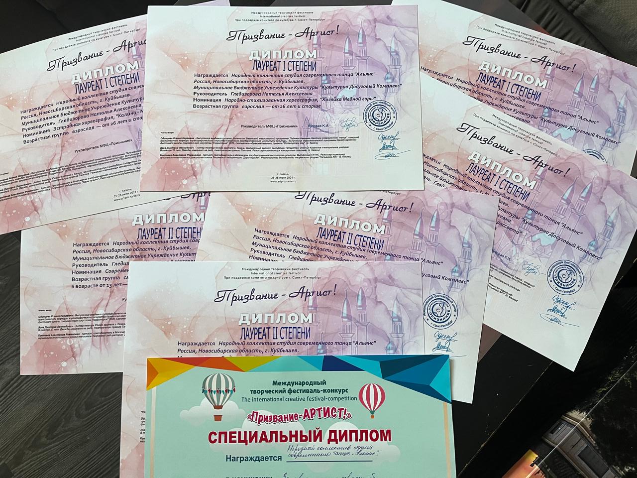 Народный коллектив студия современного танца «Альянс» (балетмейстер Гледизорова Н.А.) приняла участие в Международном творческом фестивале – конкурсе «Призвание — АРТИСТ» в г. Казани. Коллектив студии обменялся опытом с участниками фестиваля, оставил яркие впечатления о себе, достойно представил наш город и получил заслуженные награды.