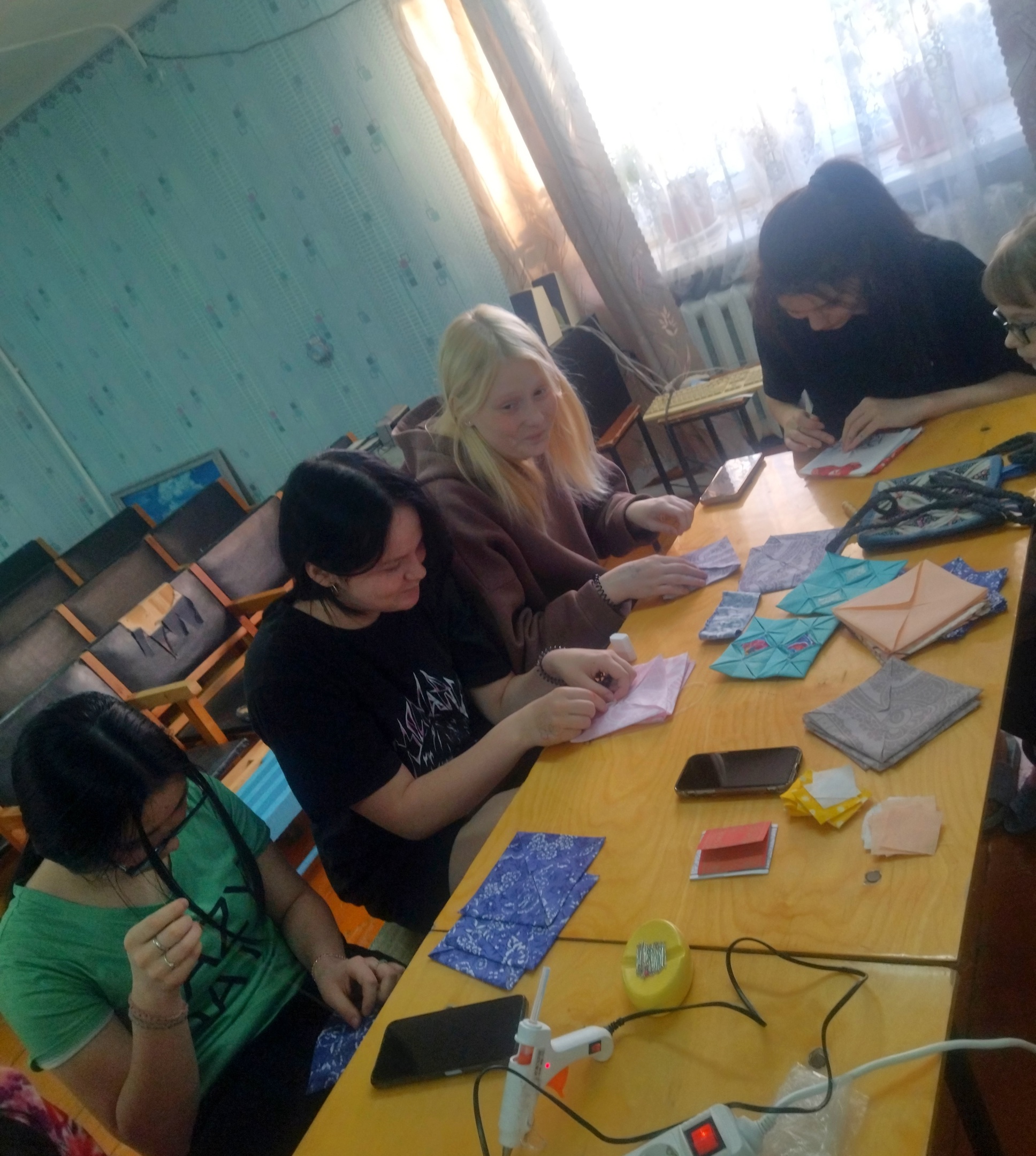 Руководитель ТО «Рукодельница» Калинина Ирина Александровна на базе общежития отделения сельскохозяйственных специальностей «Куйбышевского политехнического колледжа» в рамках творческой мастерской «Сундучок» провела мастер-классы по изготовлению сувенира-оберега «Домовёнок» и «Домский витраж» (старинная лоскутная техника). Эти занятия помогли студентам раскрыть свои таланты, научиться работать с различными материалами и инструментами, а также развить мелкую моторику и чувство прекрасного, погружая в увлекательный мир рукоделия.