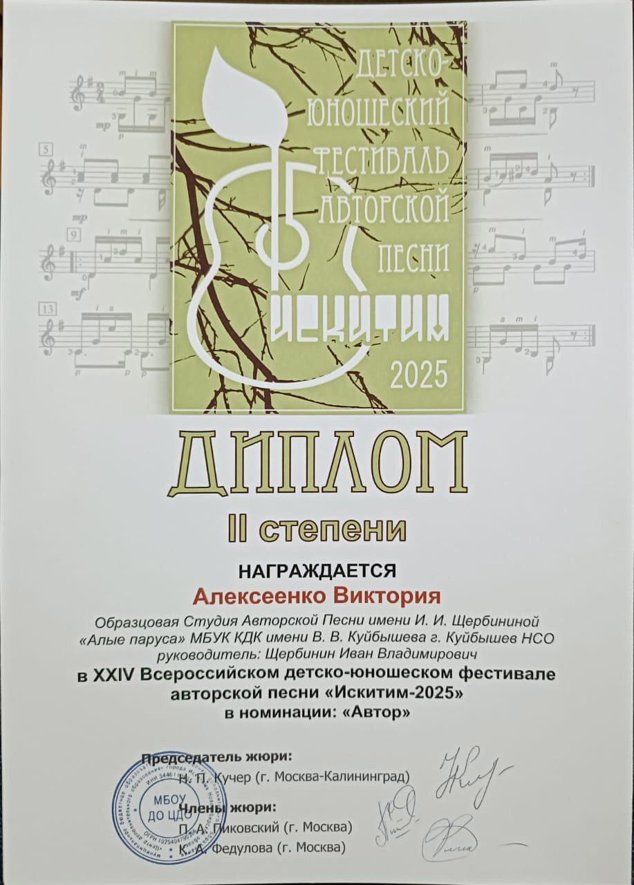 С 21 по 23 марта Студия авторской песни имени И.И. Щербининой «Алые паруса» (руководитель И.В.Щербинин) приняла участие в XXIV Всероссийском детско-юношеском фестивале авторской песни «Искитим-2025».