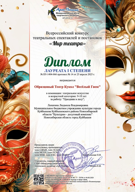 💥Подведены итоги Всероссийского конкурса театральных спектаклей и постановок «Мир театра».