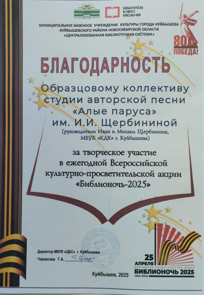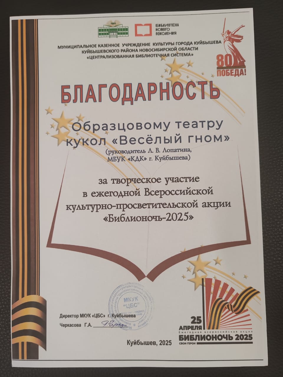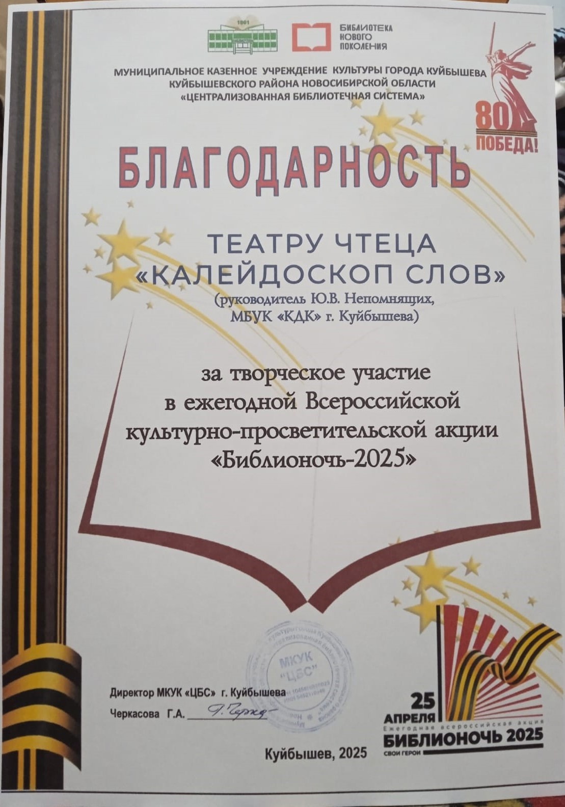 Коллективы их руководители были отмечены Благодарственными письмами за активное участие во Всероссийской акции «Библионочь — 2025».