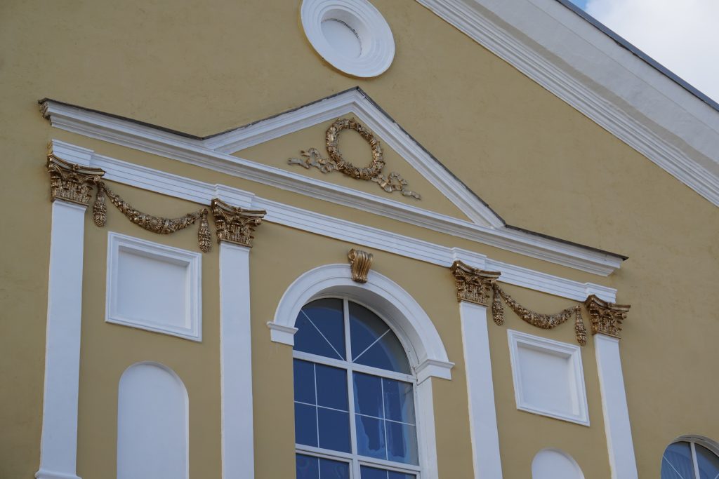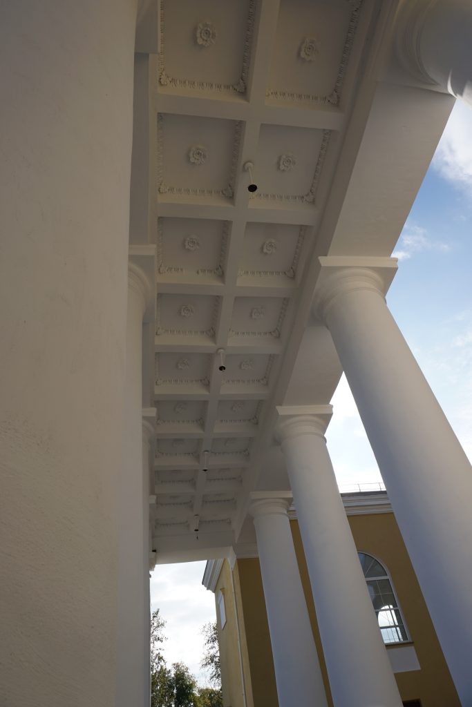 ➡В рамках проведённого ремонта выполнены следующие работы: снятие старой штукатурки, замена элементов декора (лепнина), штукатурка и покраска стен современными высококачественными акриловыми красками двух оттенков, монтаж новой системы водоотведения (перенавеска водосточных труб).