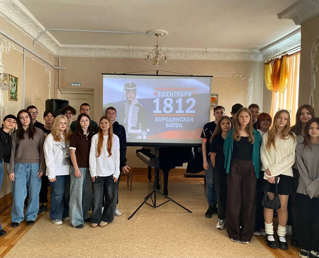 Сегодня в ДК им.В.В. Куйбышева для учеников 8-го класса МБОУ СОШ № 10 состоялась тематическая встреча «Не даром помнит вся Россия про день Бородина». Мероприятие было задумано как сочетание исторического рассказа, интерактивных заданий и литературных фрагментов, чтобы не только напомнить о ключевой странице Отечественной войны 1812 года, но и проверить знание темы.