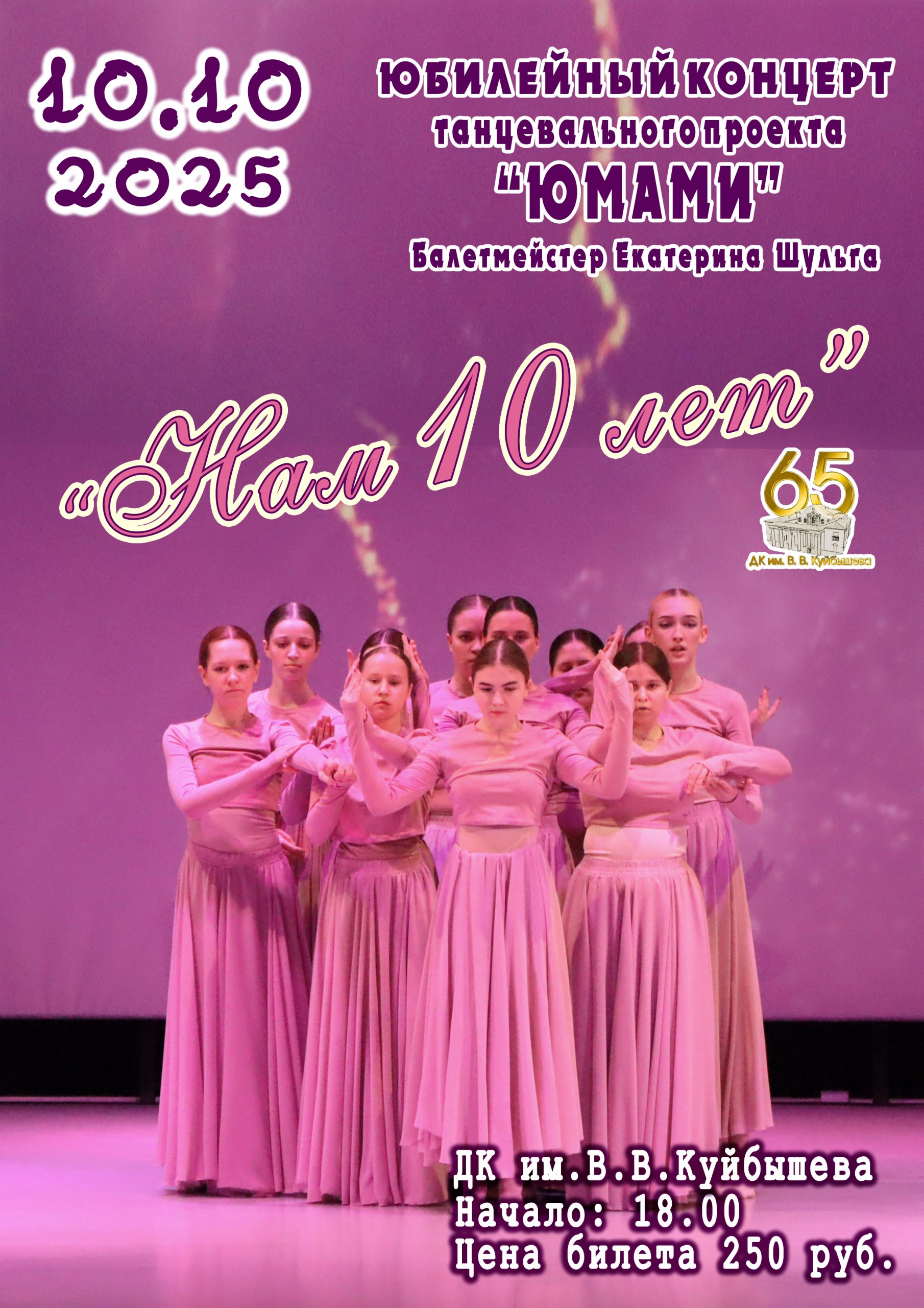 Приглашаем гостей и жителей города Куйбышева на Юбилейный концерт танцевального проекта «ЮМАМИ» (балетмейстер Екатерина Шульга) — это радостное событие в дружной хореографической семье и праздник таланта, кропотливого труда и радости творчества!