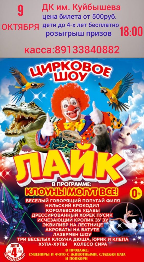 9 ОКТЯБРЯ в ДК им.В.В. Куйбышева выступит Цирковое Шоу «ЛАЙК»