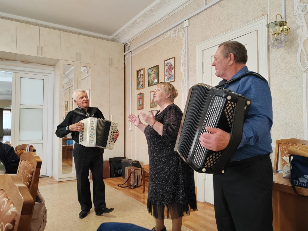 В прошедшее воскресенье состоялась очередная встреча в творческом объединении «Истоки» — «Осенью любовь приходит в золотом». На встречу приехали поэты и музыканты из Убинского района. После традиционного вручения наград за участие в конкурсах слово было предоставлено гостям. Свои стихи прочли Василий Агеев («Мама», «Журавли – птицы памяти», посвящённое 80-летию Победы), Ольга Даурцева («Станут дали темны», «Русские», «Когда за окошком осень»), Анна Смагина («Мои стихи – такие же, как я», «Кубик Рубика»), Валентин Житомирский (стихи о русской гармони). Очень задорно Валентин Александрович исполнил несколько песен («Галина», «Изгиб гитары жёлтой», «Вы любите гармонь», «Желтоглазая ночь» и др.), аккомпанируя себе на гармонях, в том числе песню «Ты – моя ромашка» на стихи убинской поэтессы, члена ТО «Истоки» Т.Н. Крышталёвой, которая, к сожалению, покинула нас осенью 2024 года. Истоковцы подпевали ему знакомые песни. В общем, заразил всех присутствующих Валентин Александрович своей неуёмной энергией, задором, широкой улыбкой!