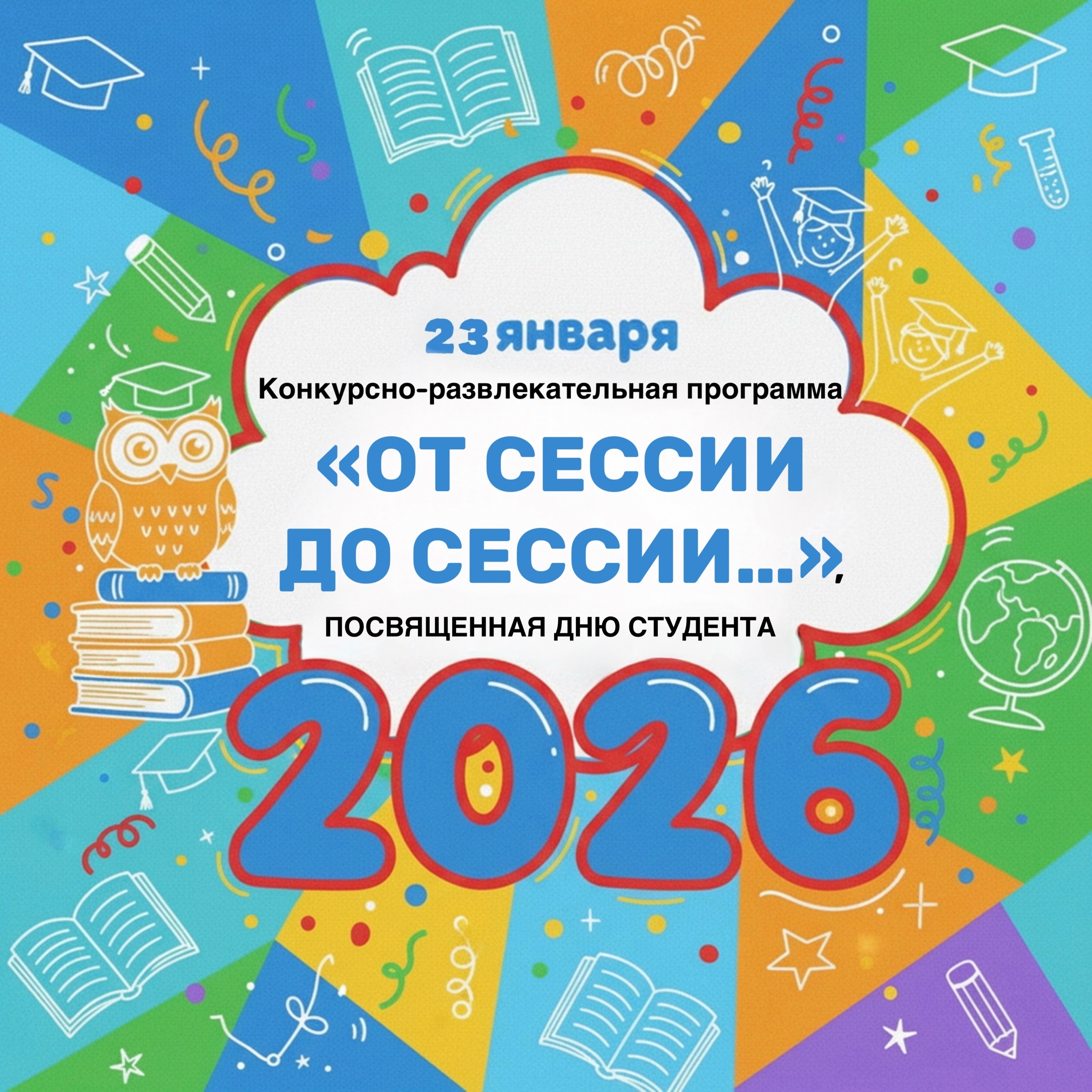 Приглашаем вас принять участие в конкурсно-развлекательной программе «От сессии до сессии», посвящённой Российскому дню студента!