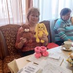 Участники любовались вышитой крестом «Девушкой с конём» (Л. Баталова), уютными картинами С. Кожевниковой («Блинчики с вареньем», «Астры») и новой работой У. Власенко — пейзажем с огромным весенним небом, Н. Мозалёва принесла милые вязаные игрушки. 🧸