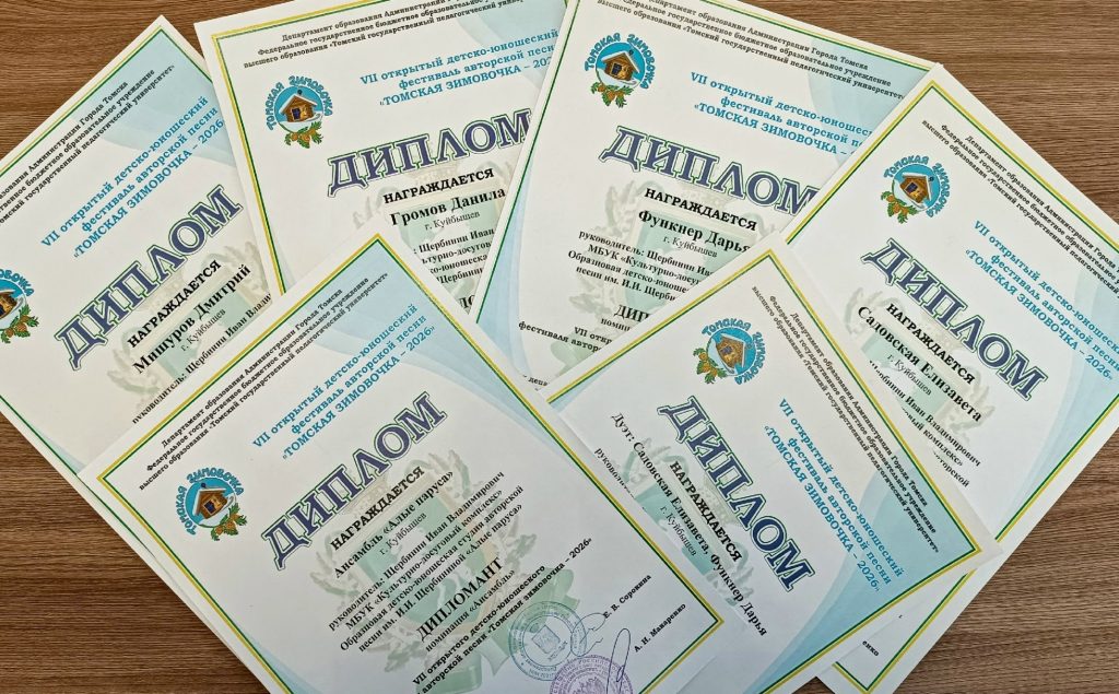 С 20 по 22 февраля в Томске прошел VII открытый детско-юношеский фестиваль авторской песни «Томская зимовочка – 2026». Юные авторы-исполнители студии авторской песни им. И.И. Щербининой «Алые паруса» достойно выступили и стали дипломантами фестиваля.