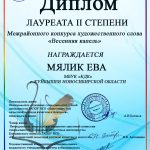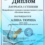 Поздравляем участников и, в первую очередь, победителей конкурса: Еву Мялик с дипломом Лауреата II степени и Тюрину Алину – Лауреата I степени!