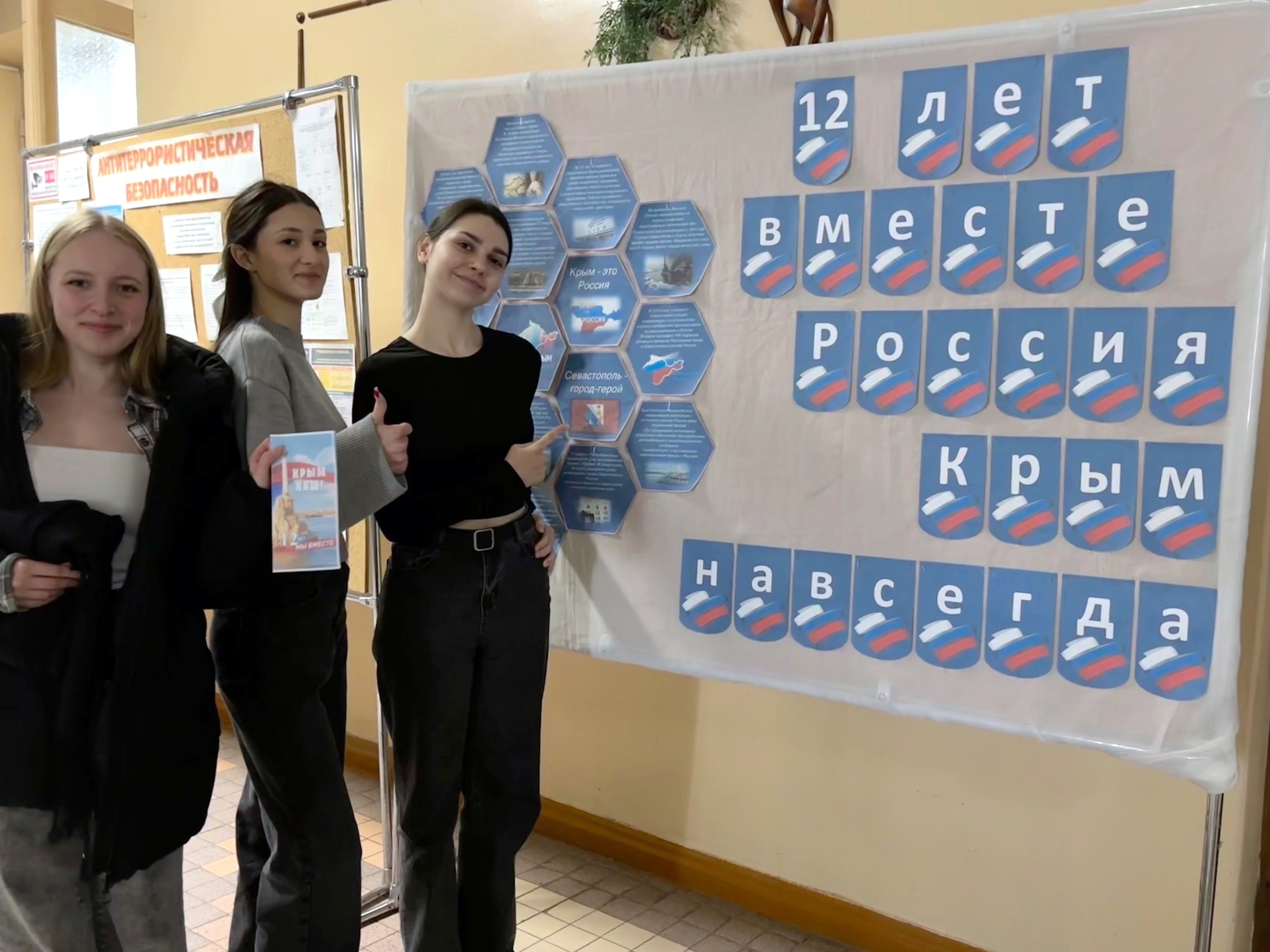В честь этой знаменательной даты в фойе ДК им. В. В. Куйбышева специалист по работе с молодежью Г.С. Хмелевская оформила тематический стенд «12 лет вместе». Материалы выставки знакомят посетителей с удивительной историей полуострова, его живописными достопримечательностями️ и героическими страницами военной истории ⭐.