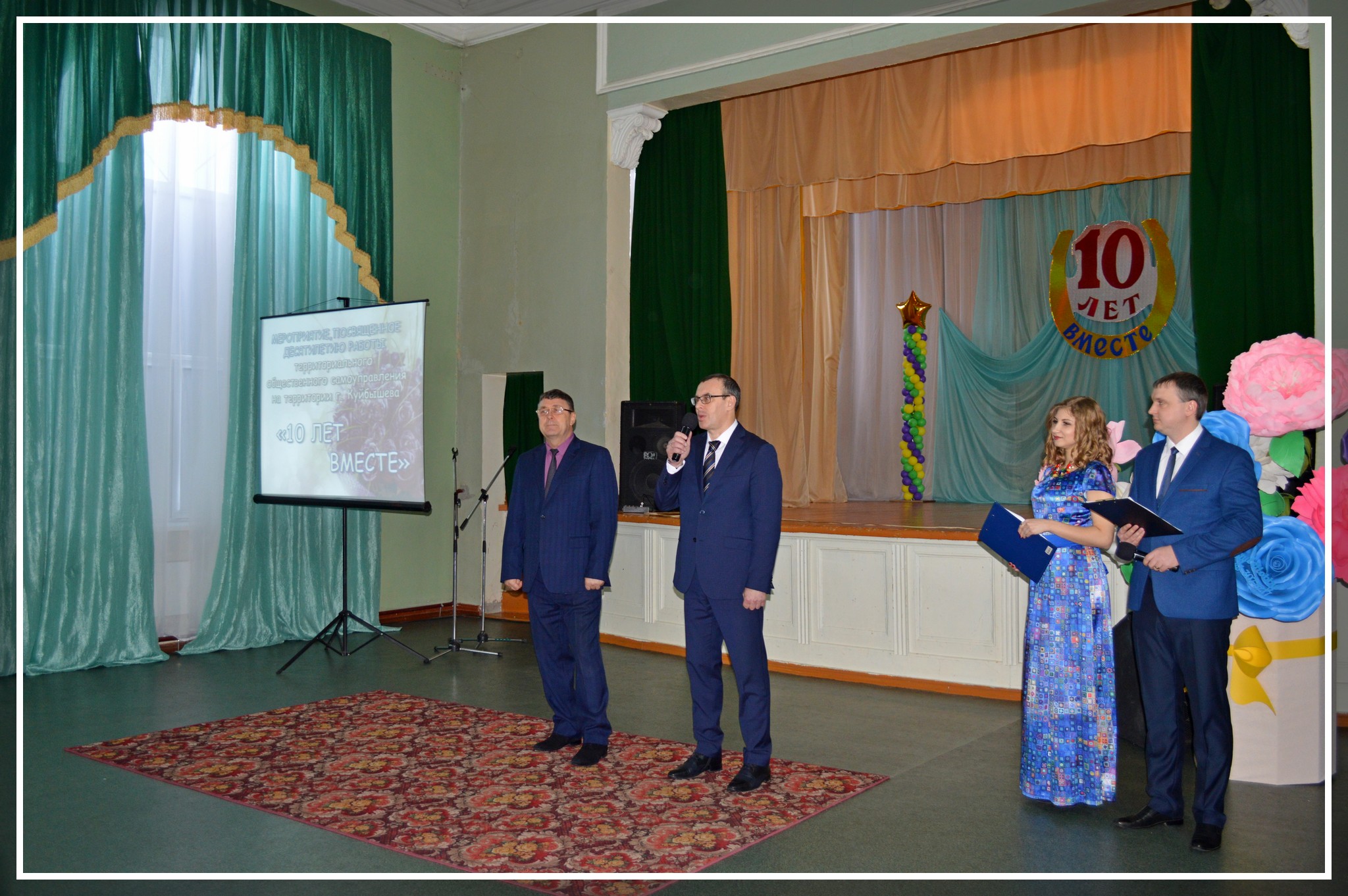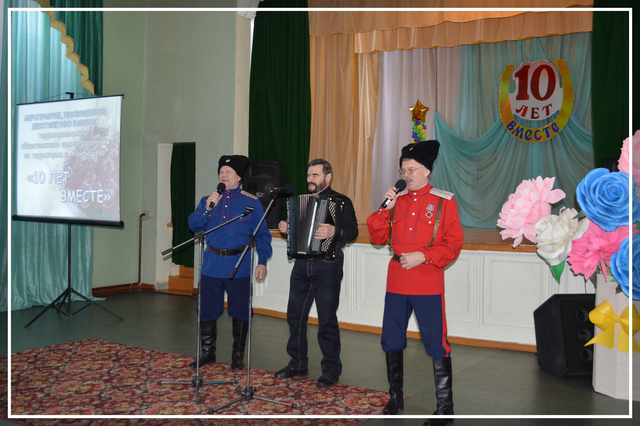 Свой первый юбилей отметили представители Территориального общественного самоуправления. Мероприятие под названием «Десять лет вместе» прошло в малом зале ДК, на котором присутствовали председатели ТОС, представители уличных комитетов, почётные гости: Глава Куйбышевского района Олег Васильевич Караваев, Глава города Куйбышева Алик Алексеевич Андронов, заместитель Главы города Куйбышева Виктор Петрович Марчуков, Консультант Управления по работе с территориями Министерства региональной политики НСО Евгений Сергеевич Рахимов.