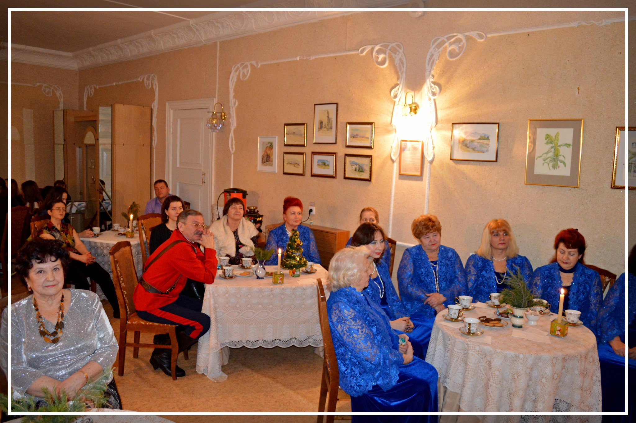 Так романтично назывался вечер романсов, традиционно состоявшийся накануне празднования Нового года и Рождества Христова, а именно 19 декабря в 18.00 часов в гостиной зажглись свечи, светильники на стенах. Веточки ели, украшенные золотыми шарами, напомнили всем гостям, которые уютно расположились за нарядными столиками, о предстоящих праздниках. Конечно, это создало определённое состояние души.