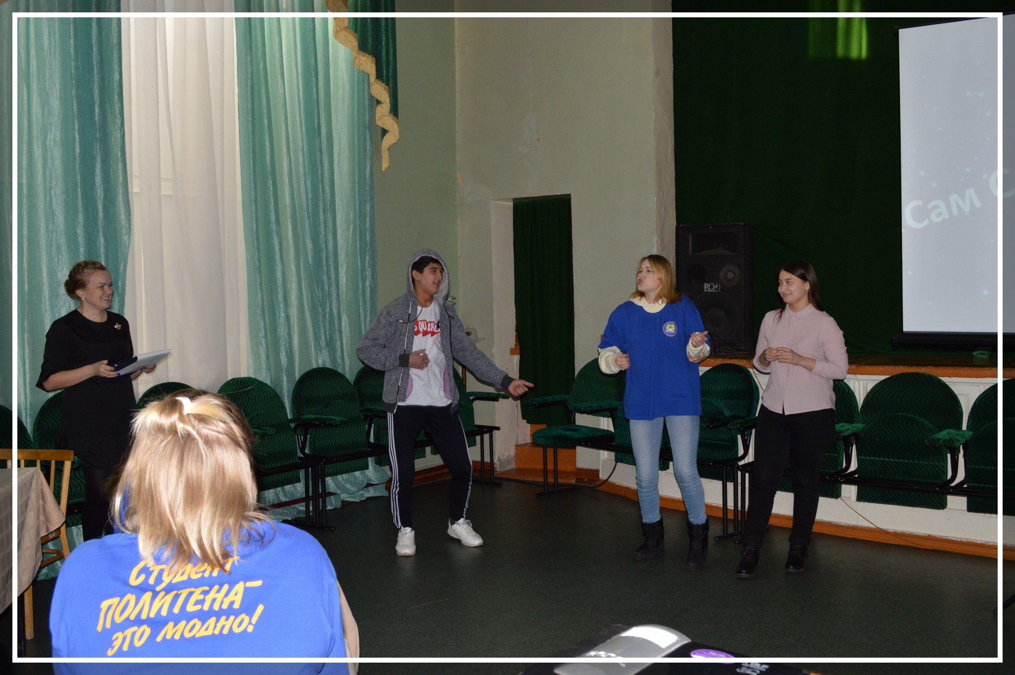 - «Творческая мастерская» (придумать озвучку к видеоотрывку на студенческую тему)